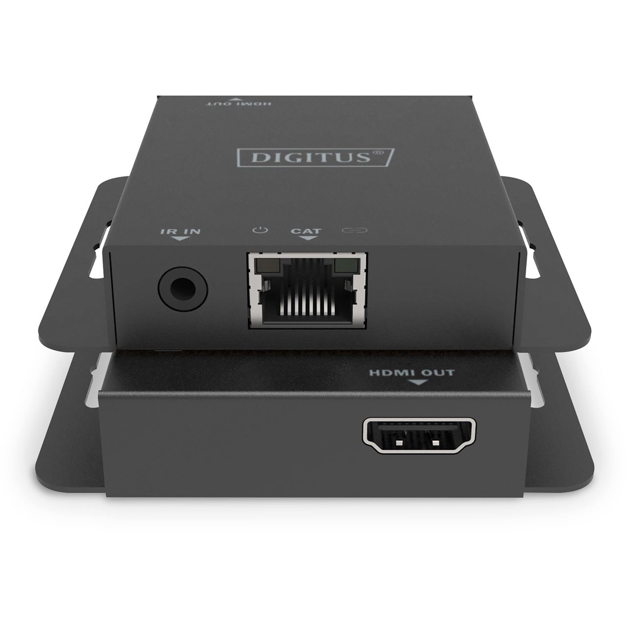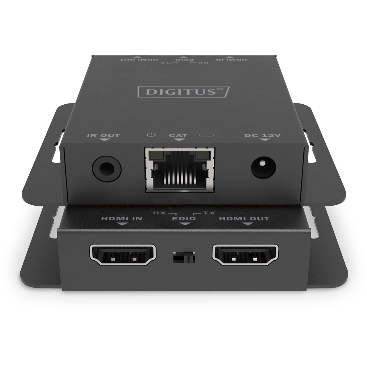 Digitus 4K HDMI Extender Set, 70 m. Typ: AV-Sender & -Empfänger, Maximale Auflösung: 3840 x 2160 Pixel, unterstütze Kabeltypen: Cat6, Cat6a, Cat7, Cat8. Übertragungstechnik: Kabelgebunden. Betriebsspannung (Sender): 12 V, Betriebsspannung (Empfänger): 12 V, Stromverbrauch (Sender) (max.): 1,86 W. Empfängerdimensionen (B x T x H): 69 x 79 x 16,5 mm, Receivergewicht: 130 g, Transmitter-Abmessungen (BxTxH): 69 x 79 x 16,5 mm. Menge pro Packung: 1 Stück(e), Verpackungsbreite: 200 mm, Verpackungstiefe: 113 mm