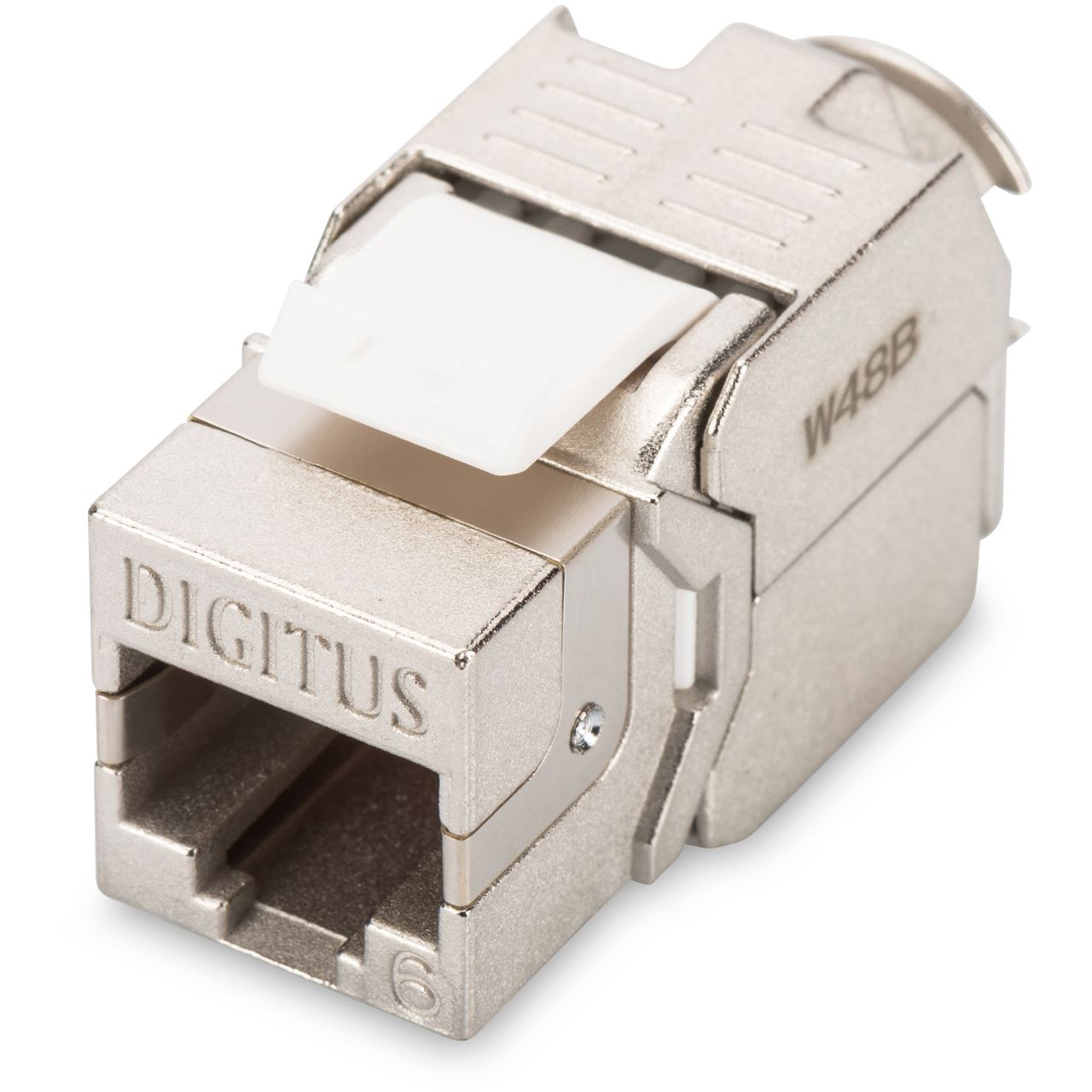 Digitus CAT 6 Keystone Modul, geschirmt. Bauart: Flach, Produktfarbe: Silber, Anschluss 1: RJ-45. Breite: 14 mm, Tiefe: 34 mm, Höhe: 20 mm. Verpackungsvolumen: 12 cm³, Verpackungsbreite: 15 mm, Verpackungstiefe: 40 mm. Menge pro Packung: 1 Stück(e). Ursprungsland: China