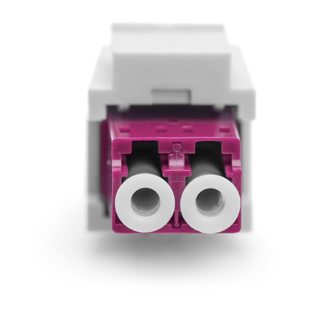 Digitus LWL LC/LC-Duplex-Kupplung, Multimode-OM4, Keystone-Modul. Verbindungstyp: LC/LC, Produktfarbe: Violett, Kabel mode struktur: Multi-Modus. Breite: 22 mm, Tiefe: 17 mm, Höhe: 33 mm. Menge pro Packung: 1 Stück(e), Verpackungsbreite: 70 mm, Verpackungstiefe: 23 mm. Ursprungsland: China