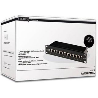 Die CAT 6 Patch Panel für 254 mm (10") Rackmontage von DIGITUS® sind gefertigt nach Link Performance Klasse E, für bis zu 250 MHz, ISO/IEC 11801 und EN 50173. Kabelinstallation erfolgt über die LSA-Leisten, welche nach EIA/TIA 568B farbcodiert sind. Das Gehäuse besteht aus galvanisiertem kaltgewalrztem Stahl gem. EN1.4301, UNS S30400, AISI 304 und LMSAD110.