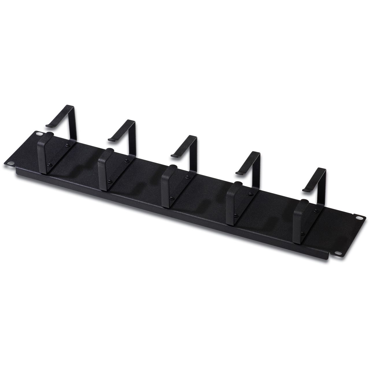 Die Kabelrangierpanel werden an den 483 mm (19“)-Profilschienen befestigt. Fünf Kabelführungsbügel ermöglichen ein einfaches, horizontales rangieren von Patchkabeln. Ein optimales Kabelmanagement in Ihrem 483 mm (19“) Netzwerk- oder Serverschrank ist bedeutet.