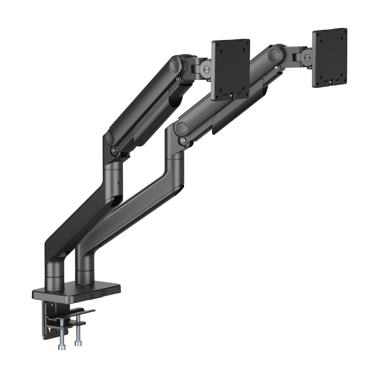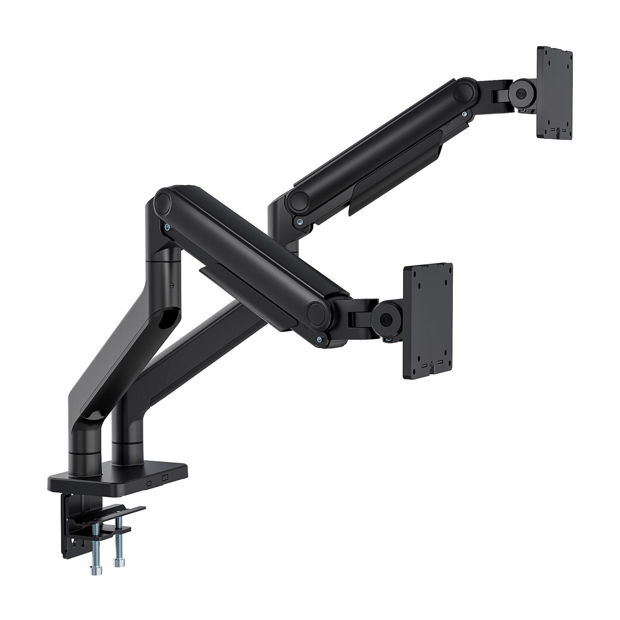 Leistungsstarke Monitorhalterung für maximale Flexibilität und Stabilität Diese vollbewegliche Tischhalterung wurde speziell für große Monitore bis zu 45 Zoll und einem Gewicht pro Arm von bis zu 20?kg entwickelt – ideal für anspruchsvolle Arbeitsumgebungen und hochwertige Setups. Egal ob flacher Bildschirm oder Curved Display: Die Halterung bietet höchste Stabilität und Flexibilität in einem platzsparenden Design. Dank der robusten Heavy-Duty-Konstruktion trägt sie auch schwere Monitore mühelos und ermöglicht gleichzeitig präzise Ausrichtung in alle Richtungen. Die integrierte Federspannung sorgt für eine feinjustierte Gewichtsanpassung, sodass der Monitor mühelos in die gewünschte Position gebracht werden kann – ganz ohne Nachjustieren. Für maximale Benutzerfreundlichkeit sorgt die VESA Quick-Release-Funktion: Der Monitor lässt sich schnell und einfach montieren oder abnehmen. Die innovative Schnellverschlusskupplung erleichtert zudem die Verbindung der beiden Armsegmente und reduziert den Montageaufwand erheblich. Mit zwei flexiblen Befestigungsoptionen – Tischklemme oder Durchführung – lässt sich die Halterung an nahezu jedem Arbeitsplatz anbringen. Der integrierte 180°-Drehstopp verhindert ein unbeabsichtigtes Anschlagen an Wände oder benachbarte Bildschirme, während das clevere Kabelmanagement für einen aufgeräumten, professionellen Look sorgt. Ideal für Nutzer, die Wert auf Ergonomie, Stabilität und Funktionalität legen – ob im Büro, im Studio oder im Homeoffice.