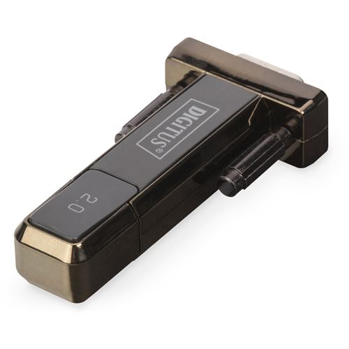 Durch den DIGITUS® USB2.0 Seriell-Adapter wird eine praktische Lösung für die Bereitstellung serieller Konnektivität geboten. Eine serielle RS232-Schnittstelle ist mittlerweile an neuerer Hardware nicht mehr verfügbar, durch den DIGITUS® USB2.0 Seriell-Adapter wird der Datenaustausch zwischen einem USB2.0-Port am Computer und Peripheriegeräten mit serieller Schnittstelle (COM-Port, RS232), wie z.B. Wetterstationen, Sensoren, Maschienensteuerungen, Set-Top-Boxen, Spielekonsolen, PDAs, Scanner, Modems, ISDN-Adapter und vielen weiteren Peripheriegeräten ermöglicht. Der USB2.0 Seriell-Adapter ist abwärtskompatibel zu USB1.1 und ermöglicht anpassbare Baudraten zwischen 75 Bit und 128.000 Bit pro Sekunde. Durch den individuell konfigurierbaren PL2303GT Chipsatz wird eine Kompatibilität aller gängigen Betriebssysteme geboten, ebenfalls wird das Power-Management, sowie Remote-Wake-Up unterstützt. Die Stromversorgung erfolgt über den USB Anschluss, ein separates Netzteil wird nicht benötigt.