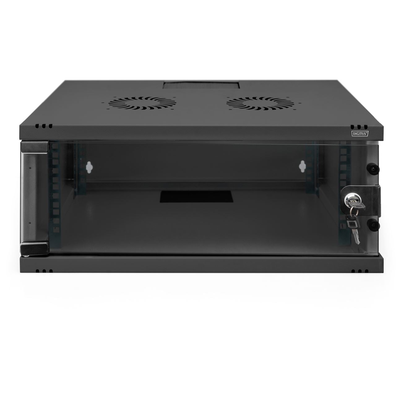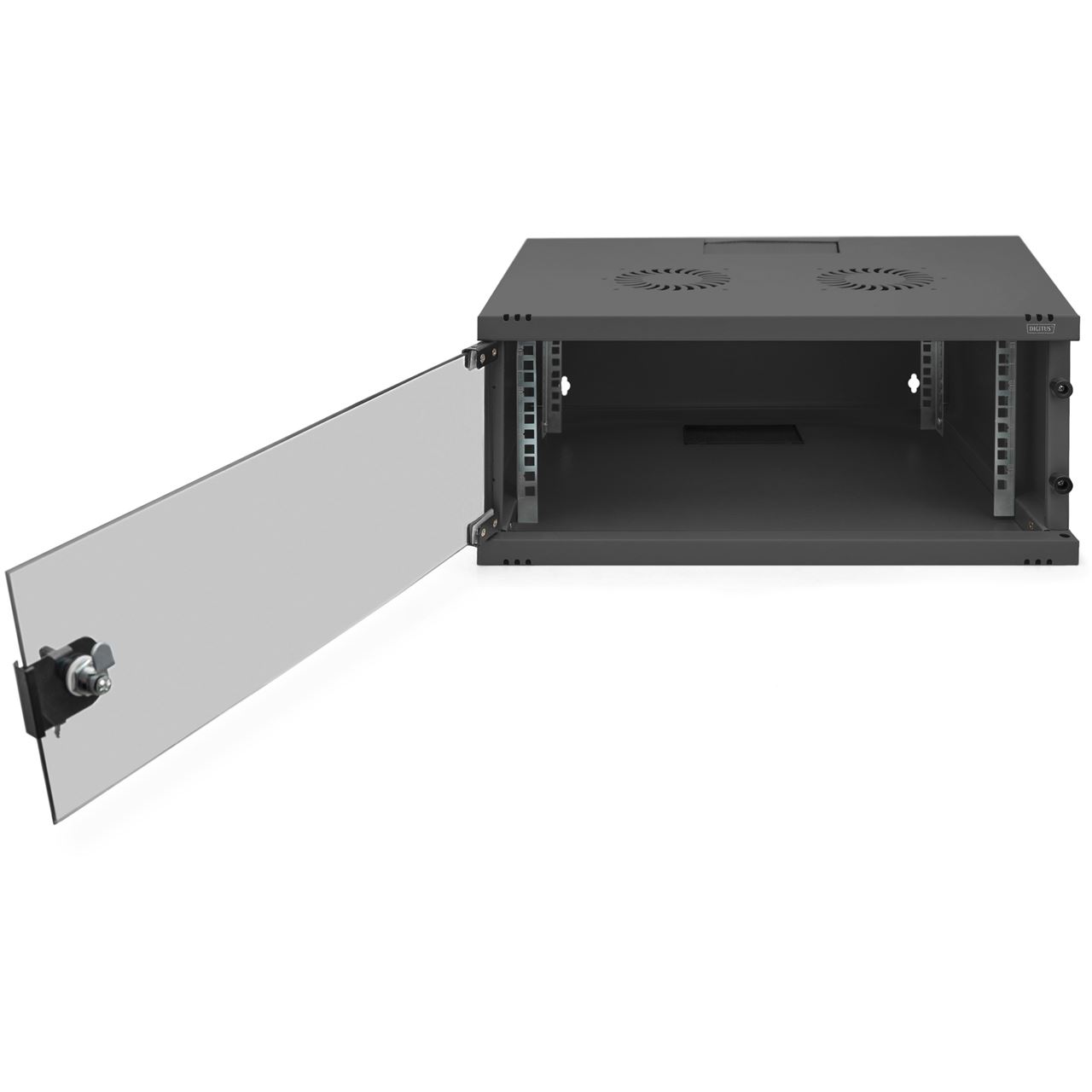 Digitus Wandgehäuse, SOHO, unmontiert - 540x400 mm (BxT). Typ: Wandmontiertes Regal, Rack-Kapazität: 4U, Höchstgewichtskapazität: 60 kg, Sperrschloss, Internationale Schutzart (IP-Code): IP20. Gewicht: 10 kg. Produktfarbe: Schwarz