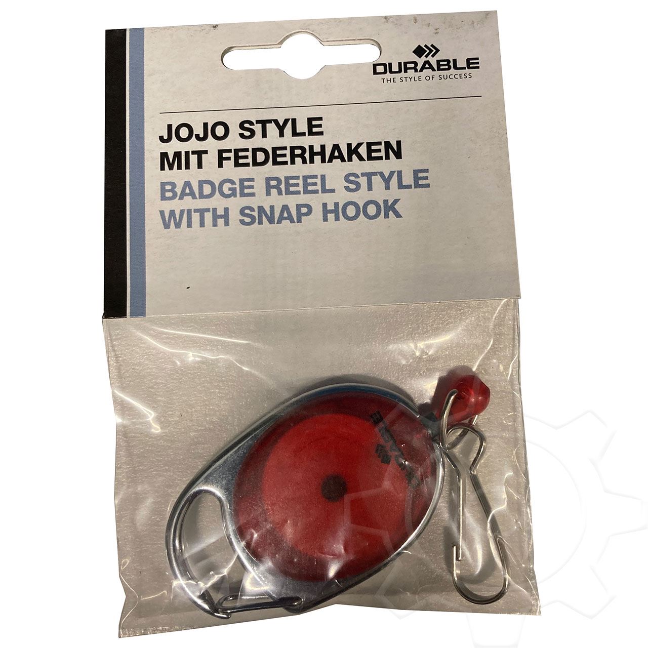 Durable 832703. Produkttyp: Namensschild mit Jojo, Produktfarbe: Rot, Silber, Menge pro Packung: 1 Stück(e). Bandlänge: 80 cm