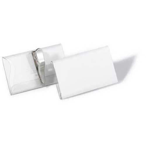 Durable Namensschild mit Krokoklemme 40 x 75 mm. Ausrichtung: Landschaft, Material: PVC, Produktfarbe: Transparent. Breite: 75 mm, Höhe: 40 mm. Menge pro Packung: 25 Stück(e)