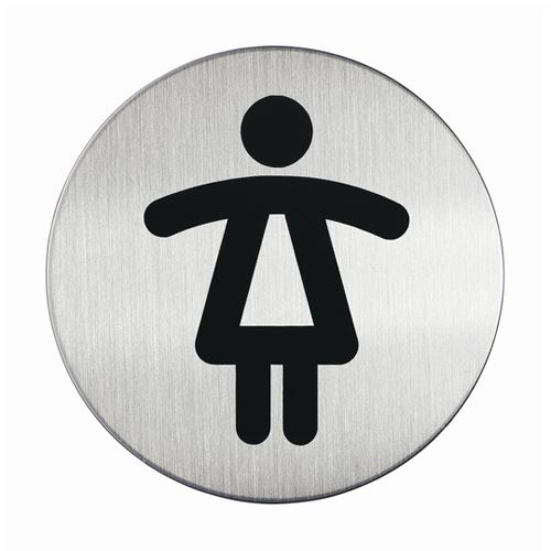 Das Piktogramm „WC Damen“ ist aus einem hochwertigen gebürsteten Edelstahl gefertigt. Es fügt sich unauffällig in Ihr Ambiente ein. Mit den Klebepads können Sie das Piktogramm an den verschiedensten Oberflächen befestigen. Der Druck ist unempfindlich und kratzfest. Es ist 83 mm groß.