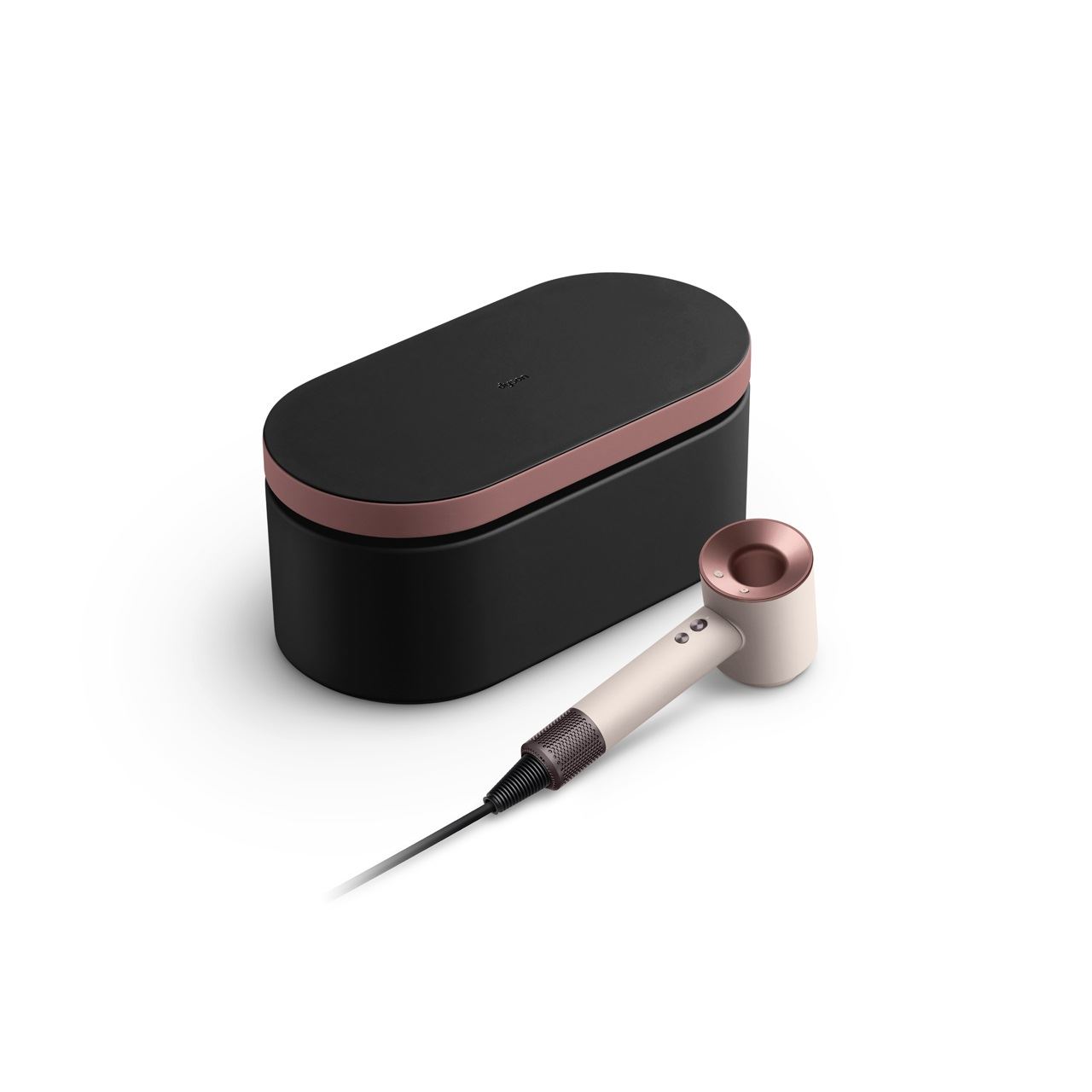 Dyson Supersonic. Motorgeschwindigkeit: 110000 RPM, Luftstrom: 41 l/s, Temperatur: 28 °C. Produktfarbe: Pink, Roségold, Kabellänge: 2,8 m. Leistung: 1600 W. Breite: 97,8 mm, Tiefe: 288,3 mm, Höhe: 77 mm. Verpackungsbreite: 198 mm, Verpackungstiefe: 399 mm, Verpackungshöhe: 175 mm