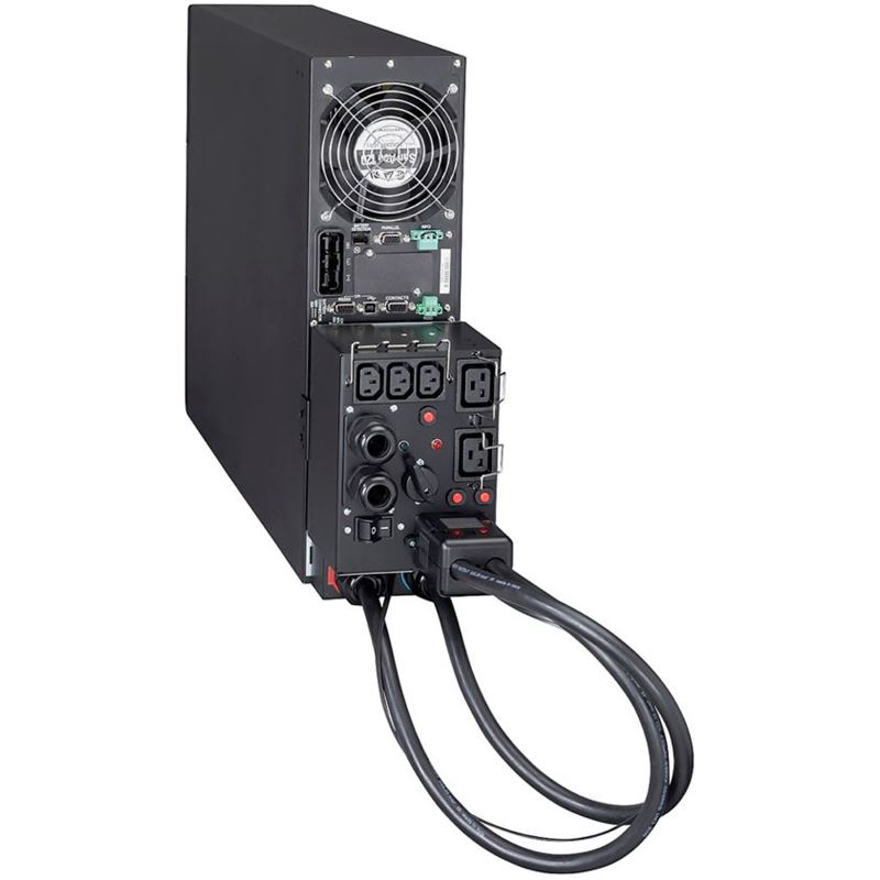 Eaton 9PX 5000i HotSwap. USV-Topologie: Doppelwandler (Online), Ausgangskapazität: 5 kVA, Ausgangsleistung: 4500 W. AC-Steckertypen: C13-Koppler, C19-Koppler, Terminal, Stecker: Terminal, Anzahl der AC-Ausgänge: 6 AC-Ausgänge. Akku-/Batterietechnologie: Plombierte Bleisäure (VRLA), Typische Backup-Zeit bei halber Belastung: 13 min. Formfaktor: Rackmount/Tower, Produktfarbe: Schwarz, Rack-Kapazität: 3U. Breite: 440 mm, Tiefe: 685 mm, Höhe: 130 mm