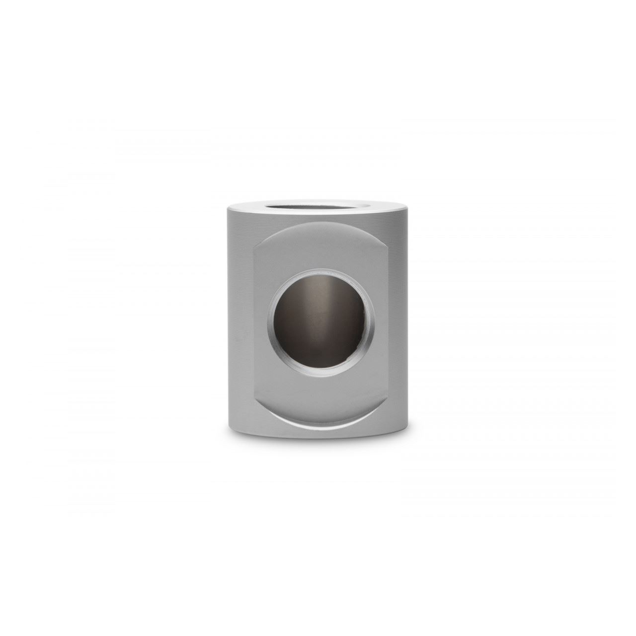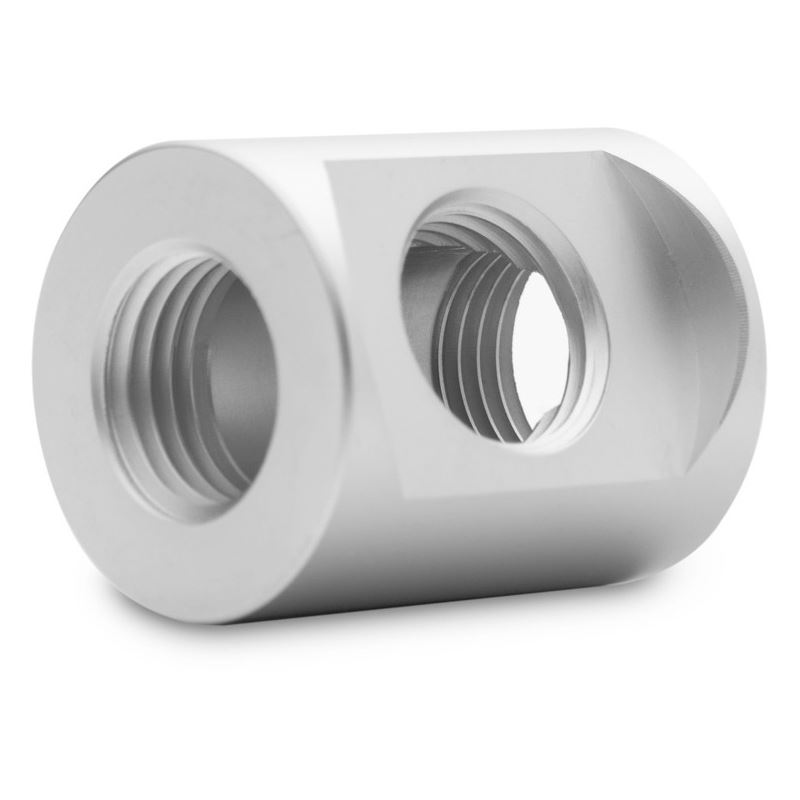 Satinierter Adapter in Silber, mit drei G1/4-Innengewinden, zum Splitten oder Zusammenführen des Kühlkreislaufs