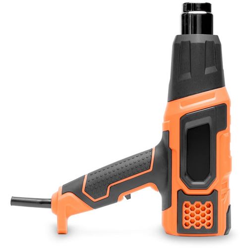 Das Gehäuse der Heißluftpistole besteht aus strapazierfähigem und leichtem Kunststoff mit Gummieinsätzen für einen bequemen Halt. Die Rückseite der Heißluftpistole und der Griff sind abgeflacht, um eine vertikale Positionierung der Luftdüse zu ermöglichen. Der leistungsstarke Heizkern und Lüfter können schnell bis zu 500 l/min (18 CFM) Luft mit einer Temperatur von 60–600 °C liefern. Die Heißluftpistole verfügt über zwei Leistungs- und Luftstromeinstellungen. Die erste Einstellung mit sanfterer Temperaturkurve und Luftstrom, Höchsttemperatur 350 °C, die zweite mit maximalem Luftstrom und 600 °C Lufttemperatur.