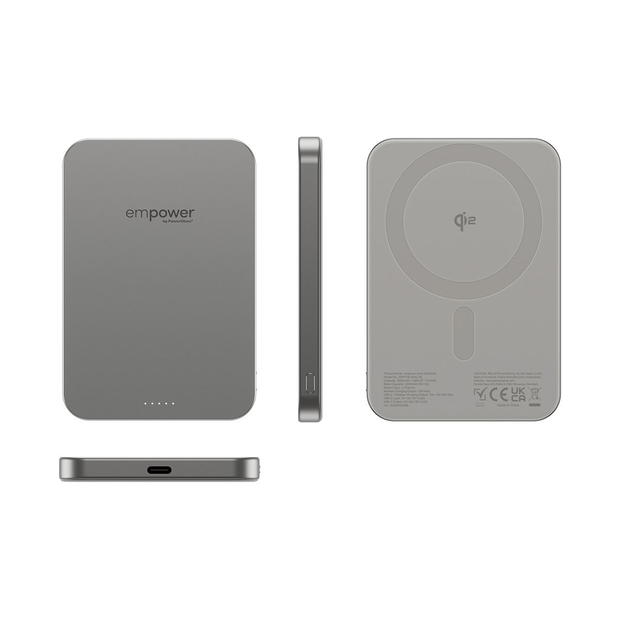 PanzerGlass empower™ by ® empower™ Bank | 5000mAh | Titanium. Akku-/Batteriekapazität: 5000 mAh. USB Typ-C Anzahl Anschlüsse: 1. Kabelloses Aufladen. Produktfarbe: Titan