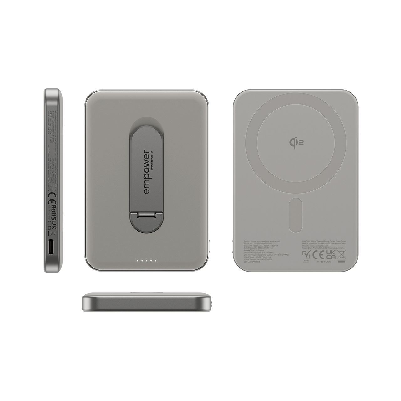 PanzerGlass empower™ by ® empower™ Bank m. Spin Stand | 5000mAh | Titanium. Akku-/Batteriekapazität: 5000 mAh. USB Typ-C Anzahl Anschlüsse: 1. Kabelloses Aufladen. Produktfarbe: Titan