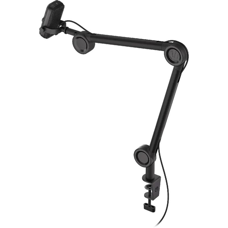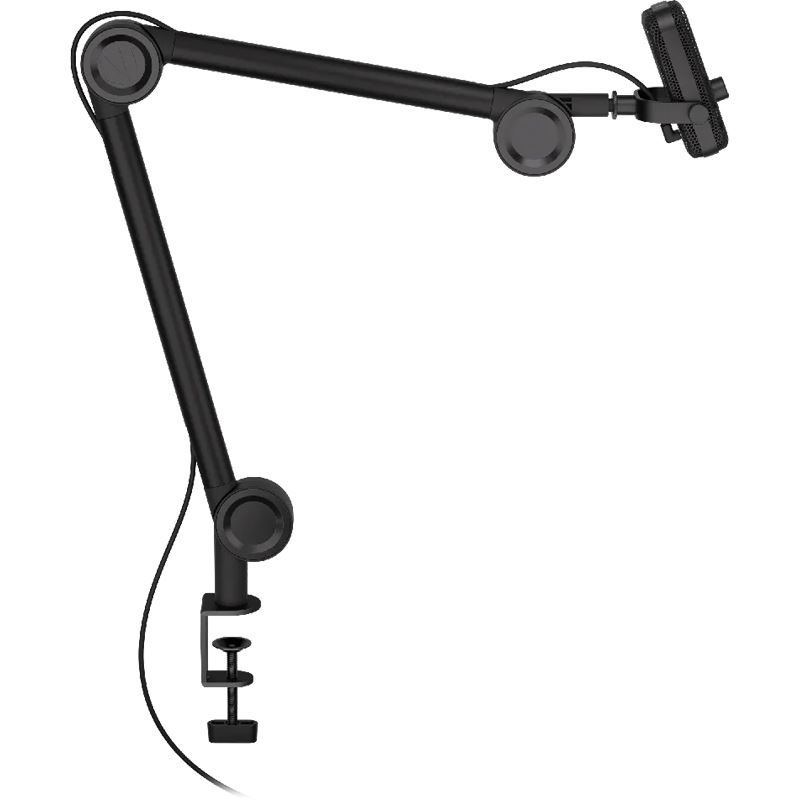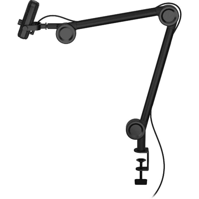 Der mitgelieferte Mikrofonarm ist stabil und bietet eine hohe Flexibilität. Durch die drei Gelenke lässt sich das Mikrofon in nahezu jede gewünschte Position bringen. Allerdings weist der Federmechanismus, der den Mikrofonarm mit der Tischklemme verbindet, bei Tischvibrationen leichte Instabilitäten auf. Das ist kein großes Problem, könnte aber in Situationen mit häufigen Erschütterungen störend wirken. Die flexible Verstellbarkeit und die einfache Einklappfunktion machen den Mikrofonarm zu einem praktischen Begleiter für jeden Schreibtisch.
