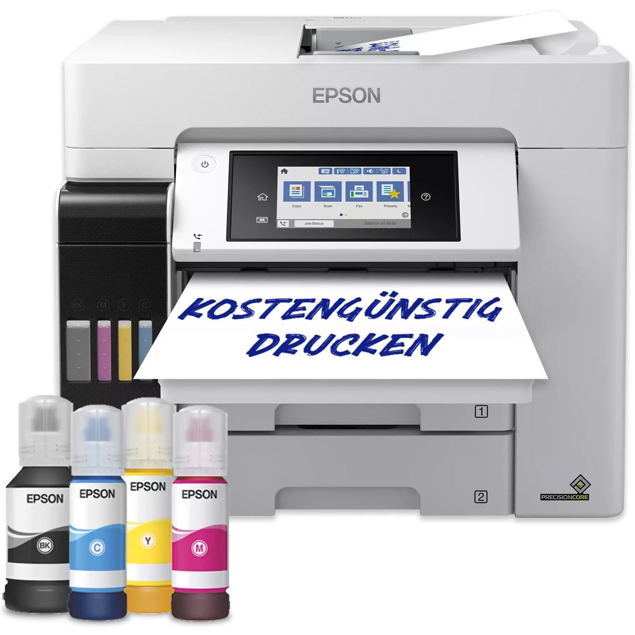 Epson EcoTank Pro ET-5885. Drucktechnologie: Tintenstrahl, Drucken: Farbdruck, Maximale Auflösung: 4800 x 2400 DPI, Druckgeschwindigkeit (Farbe, normale Qualität, A4/US Letter): 25 Seiten pro Minute. Kopieren: Farbkopieren. Scannen: Farbscan, Optische Scan-Auflösung: 2400 x 1200 DPI. Faxen: Farbfaxen. Duplexfunktion: Kopieren, Drucken, Scannen. Maximale Papiergröße der ISO A-Serie: A4. WLAN. Direktdruck. Produktfarbe: Schwarz, Weiß