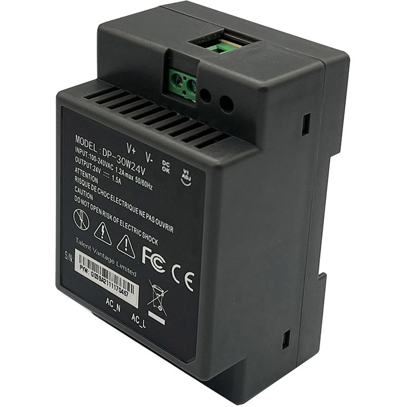 Edimax DP-30W24V. AC Eingangsspannung: 90 - 264 V, AC Eingangsfrequenz: 47 - 63 Hz, Nominale Stromabgabe: 1,5 A. Installationstyp: DIN-Schiene, Produktfarbe: Schwarz, Zertifizierung: CE, FCC. Breite: 90 mm, Tiefe: 55 mm, Höhe: 44 mm