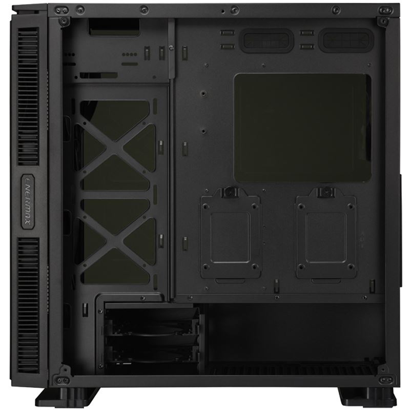 Die Struktur des EQUILENCE ist mit 0,8 mm robusten Stahl nicht nur äußerst solide, sondern auch sehr geräumig. Es wurde extra zum Gebrauch von großen High-End Komponenten entworfen – und darin finden hier reichlich Platz. Bis zu zwei 3,5“ HDD und bis zu sechs 2,5 SSD/HDD sollten euch ein ausreichendes Platzangebot für Eure Daten bieten. Auch die neuste Generation von Grafikkarten mit einer maximalen Länge von bis zu 420 mm finden im EQUILENCE bequem Platz. Wem das nicht genug ist, der dürfte sich beim reichhaltigen Platzangebot über maximale CPU Kühlerhöhen von bis zu 175 mm freuen.
