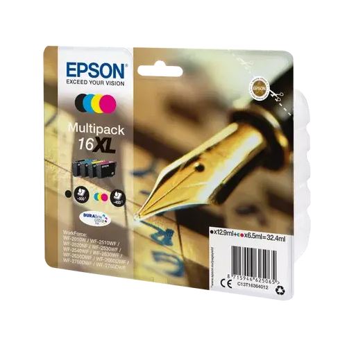 Epson Pen and crossword Multipack 16XL DURABrite Ultra Ink. Tintenpatronenkapazität: Hohe (XL-) Ausbeute, Farbiger Tintentyp: Tinte auf Pigmentbasis, Schwarzer Tintentyp: Tinte auf Pigmentbasis, Volumen schwarze Tinte: 12,9 ml, Versorgungstyp: Multipack, Volumen Farbtinte: 6,5 ml, Menge pro Packung: 1 Stück(e)