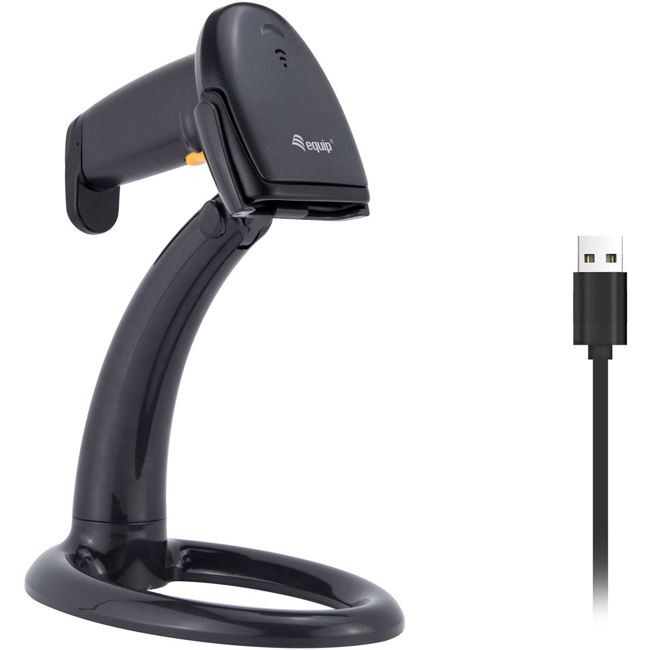 Equip USB 1D-Barcodescanner, mit Ständer. Typ: Tragbares Barcodelesegerät, Scanner-Typ: 1D, Sensor-Typ: LED. Übertragungstechnik: Kabelgebunden, Standard-Schnittstellen: USB, Kabellänge: 1,8 m. Produktfarbe: Schwarz, Gehäusematerial: Acrylnitril-Butadien-Styrol (ABS), Internationale Schutzart (IP-Code): IP54. Energiequelle: USB, Eingangsspannung: 5 V, Eingangsstrom: 0.1 A. Gewicht: 121 g, Breite: 69 mm, Tiefe: 91 mm