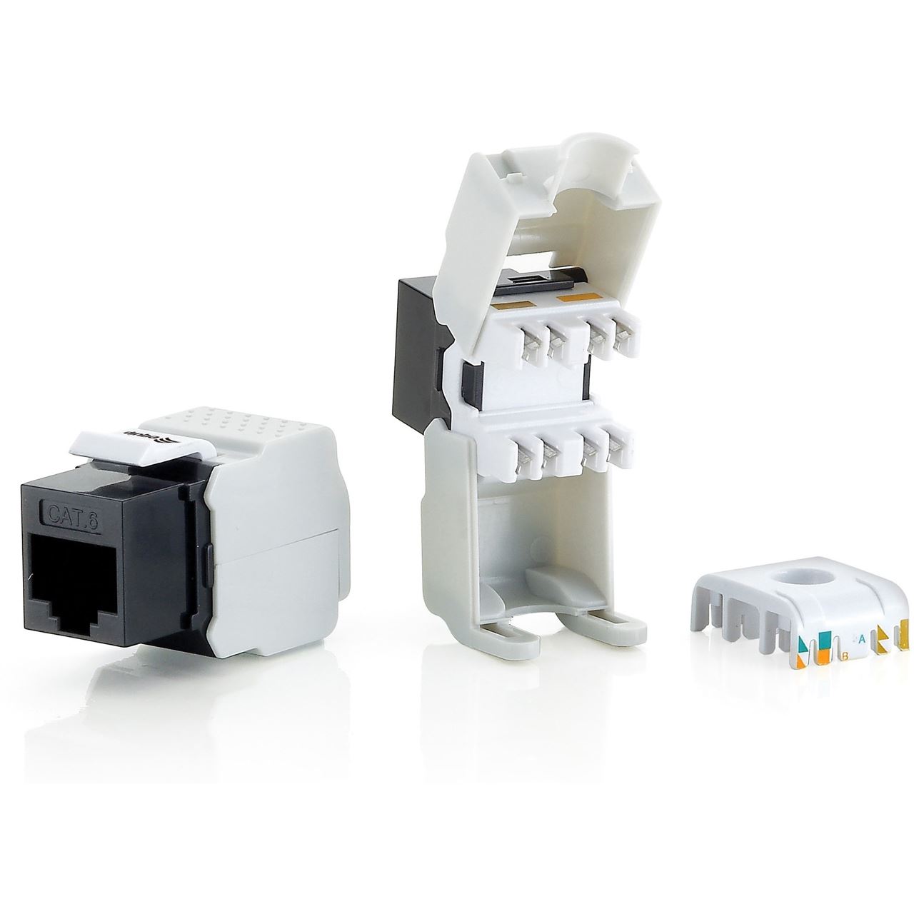 Tool free connector,Gold flash contact,Compliant with CLASS E IS0/IES 11801 2nd Edition,EN 50173,Works well with equip Keystone Jacks und Inline Coupler,IDC color T568A/T568B coded,Selling unit: 8pcs/pack/