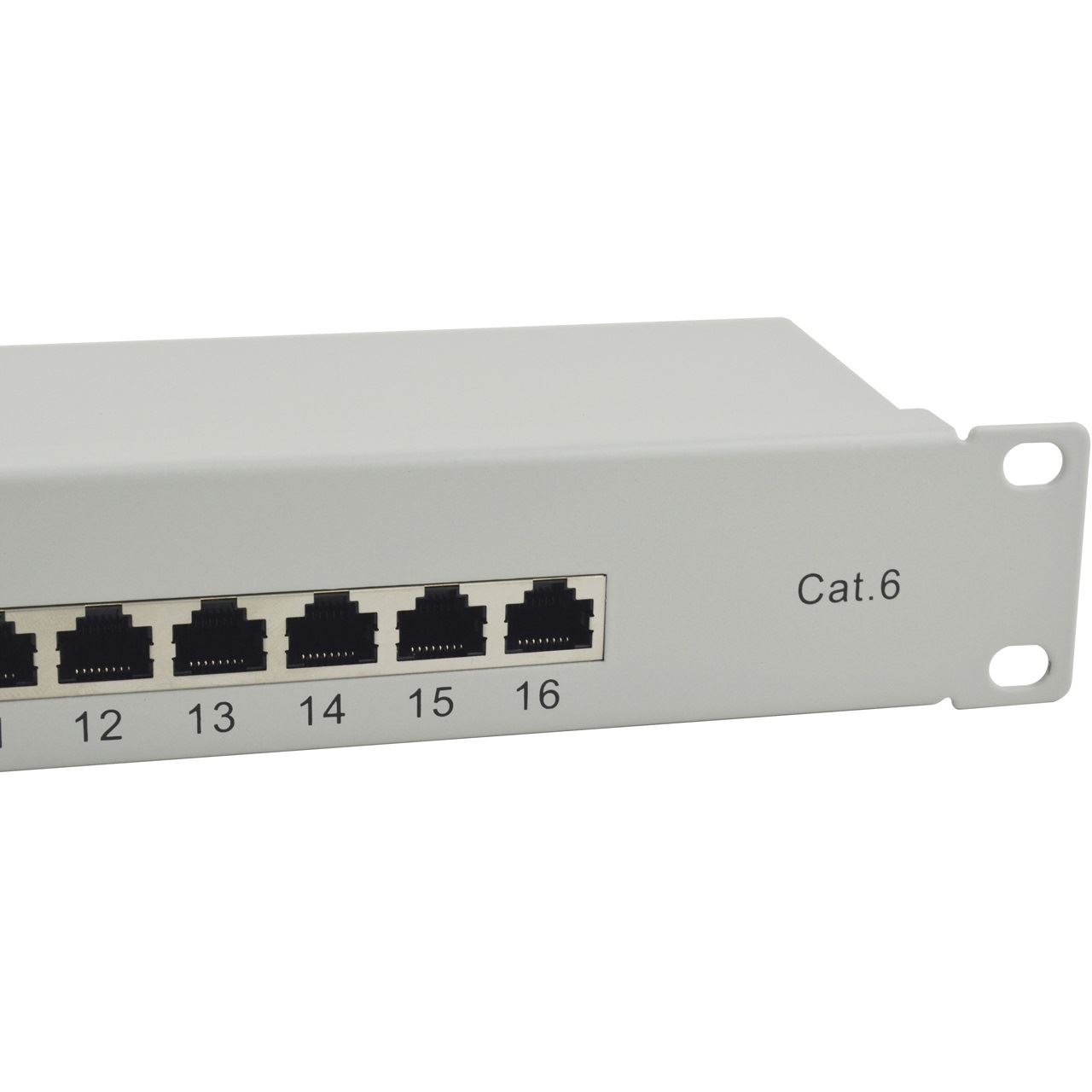 Equip 16-Port Cat.6 Ungeschirmtes Patch Panel, Hellgrau. Verkabelungstechnologie: 10/100/1000Base-T(X), Ethernet Schnittstellen Typ: Gigabit Ethernet, Maximale Datenübertragungsrate: 1000 Mbit/s. Produktfarbe: Grau, Material: Stahl, Montage: Rackeinbau. Konformitätsbescheinigungen: RoHS. Breite: 110,5 mm, Höhe: 44,5 mm, Tiefe: 483 mm. Verpackungsart: Box