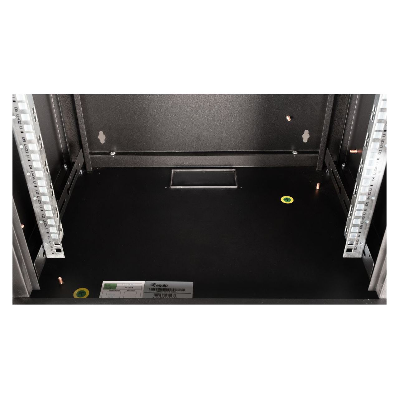 Equip Pro Mount 19' Schrank, 07HE, 600X450mm, RAL9005 Schwarz. Typ: Wandmontiertes Regal, Rack-Kapazität: 7U, Sperrschloss, Ablageschienen. Gewicht: 14,5 kg. Produktfarbe: Schwarz