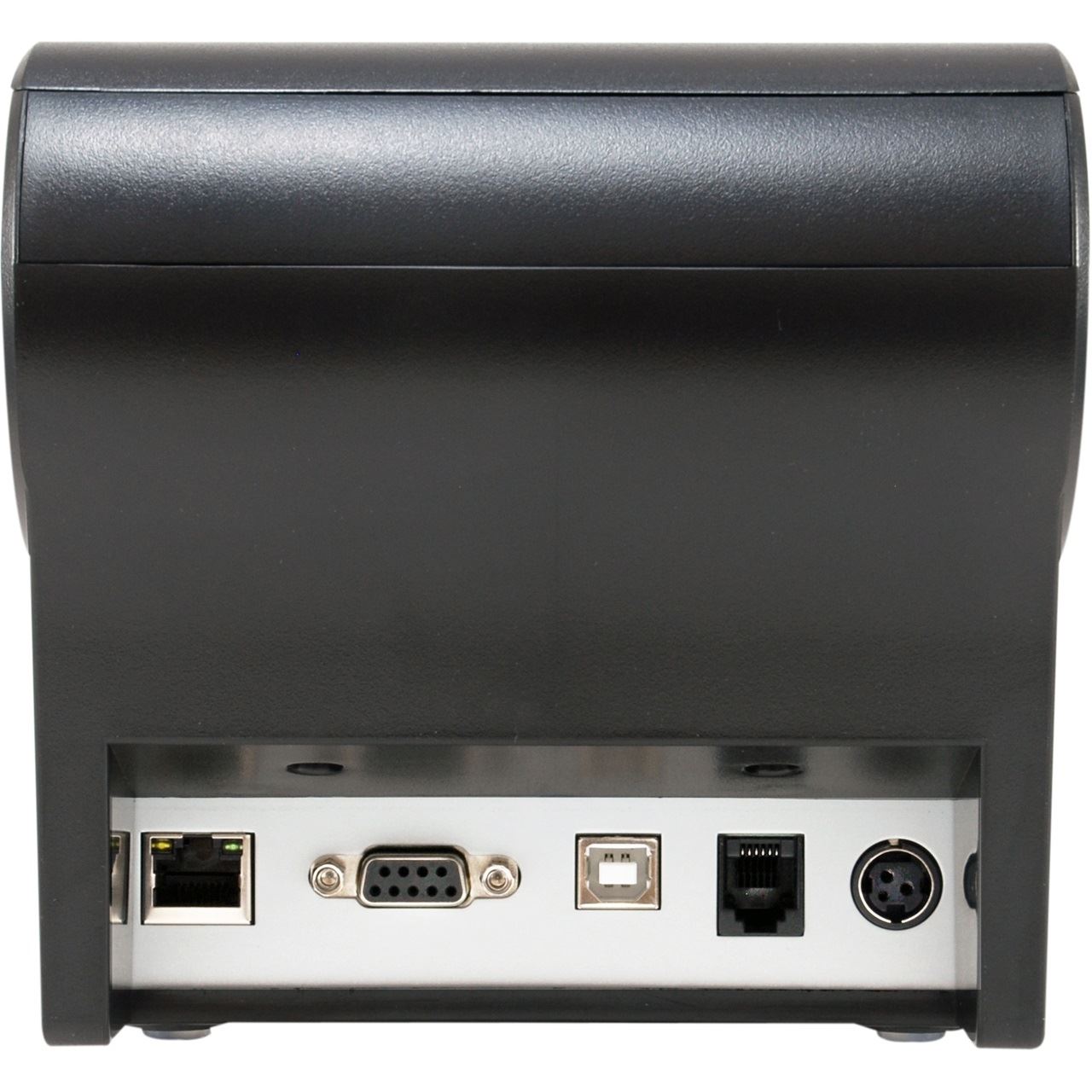 Equip 80mm Thermobondrucker für den POS mit automatischer Schneidefunktion, USB-, Ethernet-, seriellem RS232- und Kassenladen-Anschluss. Drucktechnologie: Thermodruck, Typ: POS-Drucker, Maximale Auflösung: 203 x 203 DPI. Maximaler Rollendurchmesser: 8 cm, Unterstützte Papierbreite: 80 mm, Maximum Druckweite: 7,2 cm. Übertragungstechnik: Kabelgebunden, USB-Anschlusstyp: USB Typ-B, Serielle Schnittstelle: RJ-11, RS-232. integrierte Barcodes: 1D, 2D, QR Code, EAN13, Code 128 (A/B/C), EAN8, UPC-A, Code 39, UPC-E, ITF, PDF417, Code 93, Speicherkapazität: 8 MB, Flash-Speicher: 4 MB. Produktfarbe: Schwarz