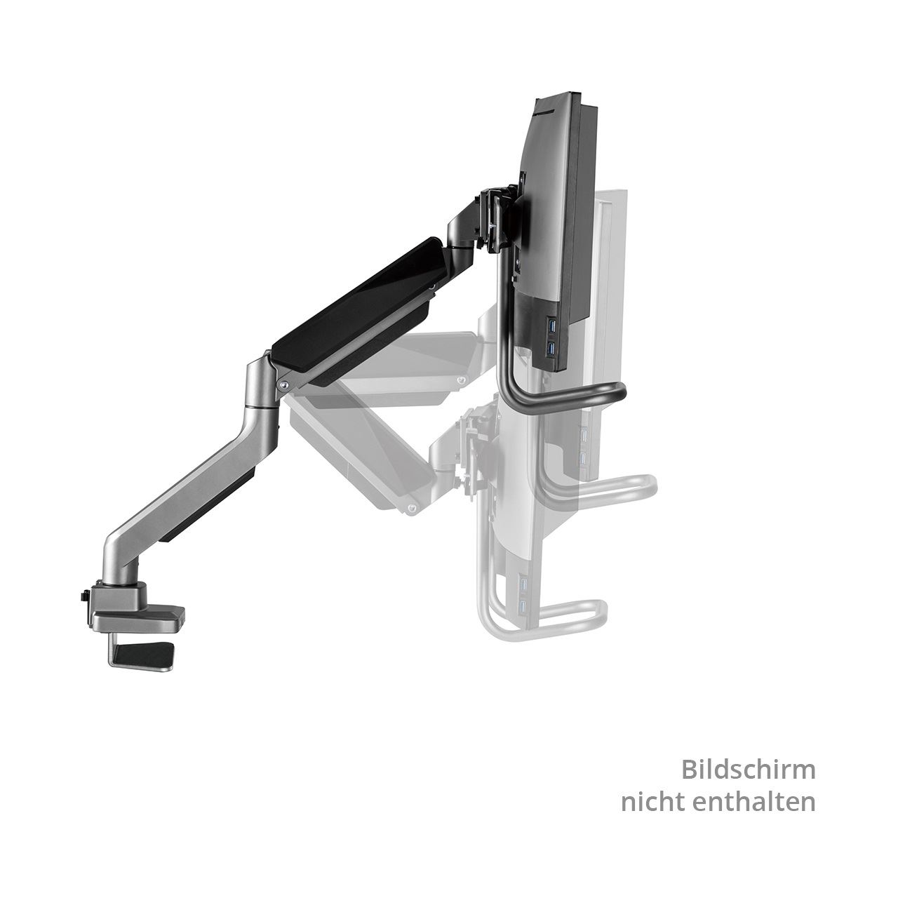 Mit einer robusten und langlebigen Konstruktion gewährleistet diese Tischhalterung Stabilität und Sicherheit für Ihre Monitore. Das Doppelarmdesign ermöglicht die unabhängige Bewegung jedes Monitors und bietet anpassbare Betrachtungswinkel und eine optimale ergonomische Positionierung. Diese Funktion ist besonders nützlich für Multitasking- oder kollaborative Arbeitsumgebungen.