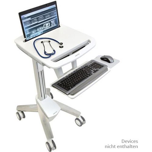 Unglaublich leicht! Dieser innovative, ergonomische und leicht zu handhabende medizinische Fahrwagen verfügt über eine stufenlose Höhenverstellfunktion für stehende und sitzende Tätigkeiten und eine einstellbare, nach hinten neigbare Tastaturablage.