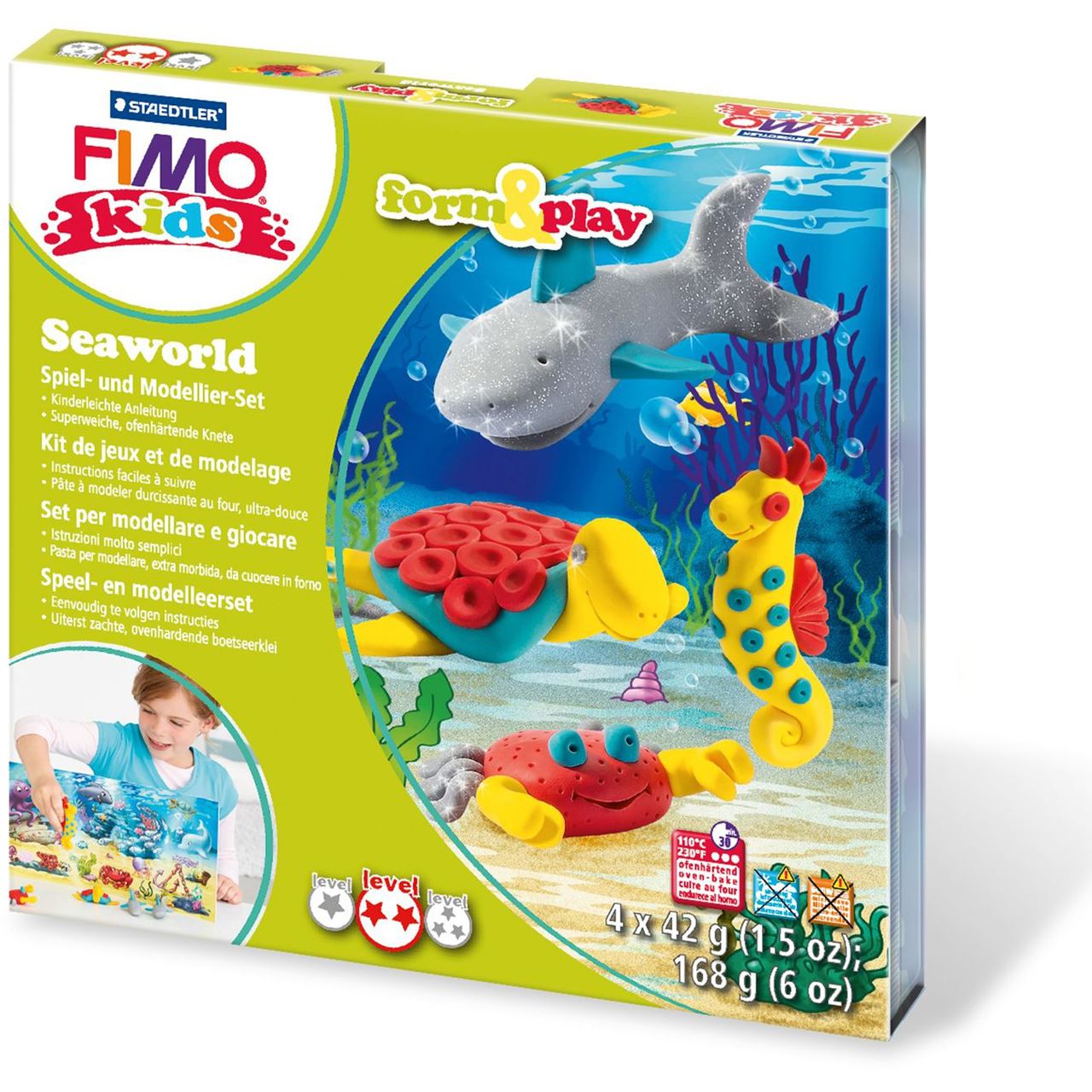 zum Erstellen von Meerestieren besonders weich, ofenhärtend, Inhalt: 4 x 42g Modelliermasse in gelb, rot, türkis, glitter-silber, Modellierstab, Spielkulisse, Anleitung (8034 14 LY)