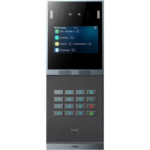 Fanvil i66. Bildschirmdiagonale: 10,2 cm (4"), Display-Auflösung: 800 x 400 Pixel, Unterstützte Videoformate: H.264. Megapixel (ca.): 2 MP, Bildwinkel, horizontal: 62°, Bildwinkel, vertikal: 37,4°. LED Typ: IR. Lautsprecherleistung: 3 W, Sprachcodec: G.711a, G.711u, G.722, G.723.1, G.726-32, G.729A, G.729B, iLBC. Produktfarbe: Schwarz, Grau, Internationale Schutzart (IP-Code): IP66, IK-Kodex: IK07