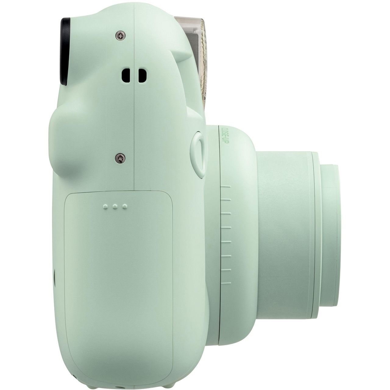 Fujifilm Instax Mini 12. Bildgröße: 86 x 54 mm, Produktfarbe: Grün, Maximum Brennweite (äquivalent 35 mm Kleinbild): 60 mm. Blitzreichweite: 0,3 - 2,2 m, Blitzladezeit: 7 s, Blitz-Modi: Auto. Kürzeste Verschlusszeit: 1/2 s, Längste Verschlusszeit: 0,004 s, Verschlusstyp: Elektronisch. Vergrößerung: 0,37x. Zylindrische Batteriegröße: AA, Akku-/Batteriespannung: 1,5 V, Battery life (photos): 100 Stück(e)