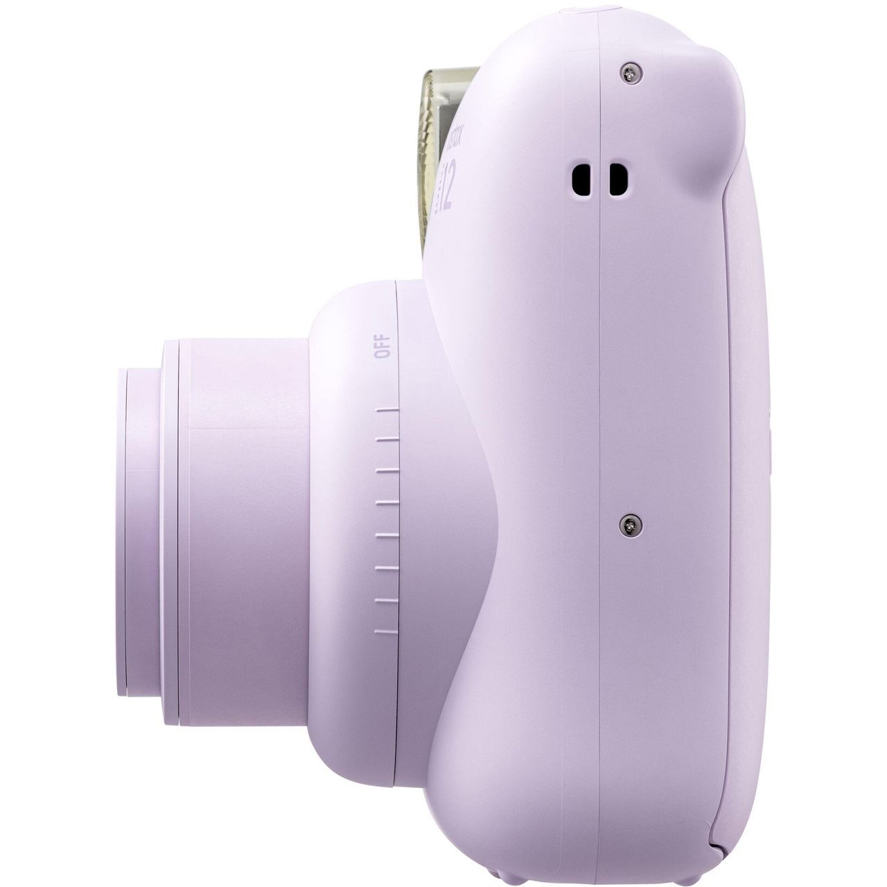 Fujifilm Instax Mini 12. Bildgröße: 86 x 54 mm, Produktfarbe: Violett, Maximum Brennweite (äquivalent 35 mm Kleinbild): 60 mm. Blitzreichweite: 0,3 - 2,2 m, Blitzladezeit: 7 s. Kürzeste Verschlusszeit: 1/2 s, Längste Verschlusszeit: 0,004 s, Verschlusstyp: Elektronisch. Vergrößerung: 0,37x. Zylindrische Batteriegröße: AA, Akku-/Batteriespannung: 1,5 V, Battery life (photos): 100 Stück(e)