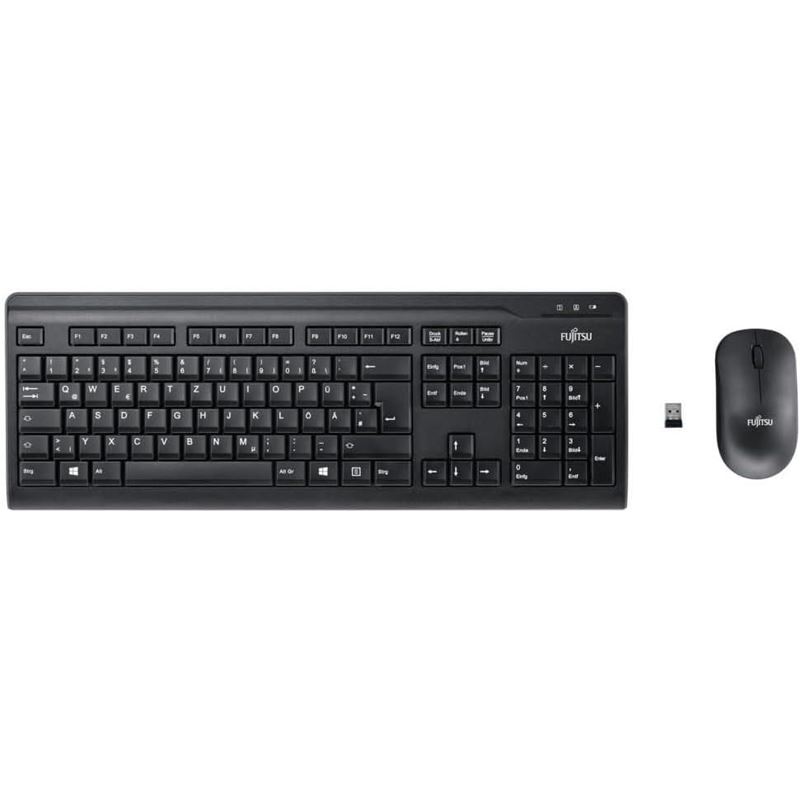 Fujitsu LX410. Tastatur Formfaktor: Volle Größe (100%). Tastatur-Stil: Gerade. Übertragungstechnik: Kabellos, Geräteschnittstelle: RF Wireless, Tastaturaufbau: QWERTY, Tastatur - Tastenanzahl: 105. Produktfarbe: Schwarz. Maus enthalten
