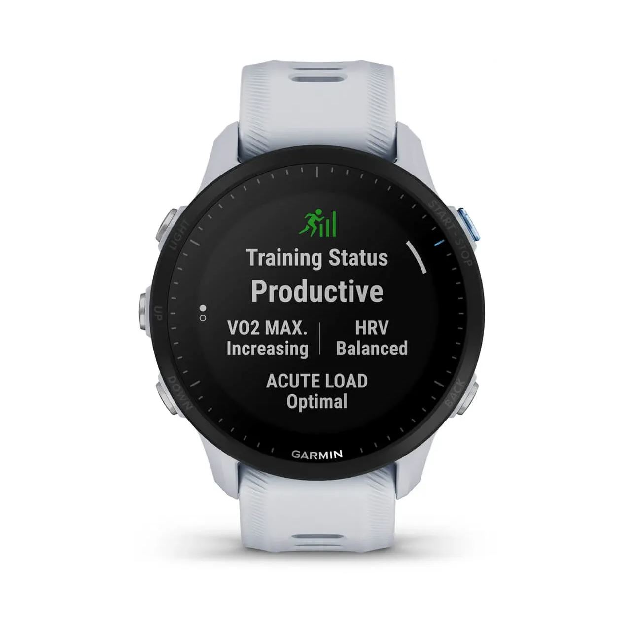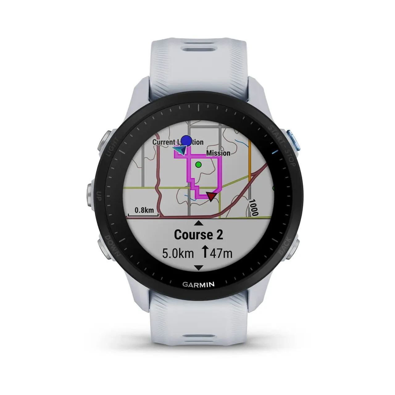Garmin Forerunner 955. Bildschirmdiagonale: 3,3 cm (1.3"), Bildschirmtechnologie: MIP, Display-Auflösung: 260 x 260 Pixel, Touchscreen. Flash-Speicher: 32 GB. WLAN. GPS. Gewicht: 52 g. Bandmaterial: -, Silikon, Armbandfarbe: Weiß, Bandgröße: Universalgröße
