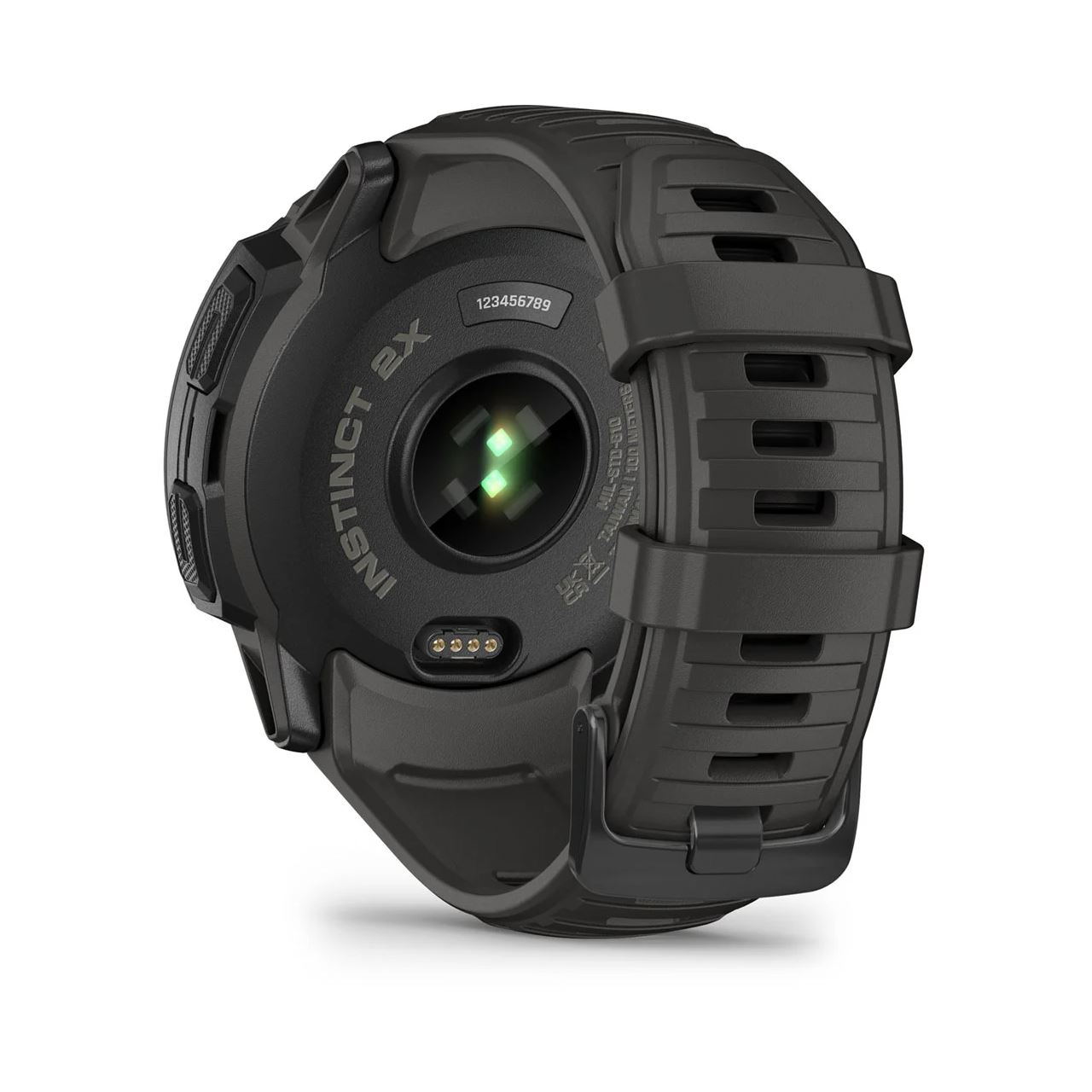 Garmin Instinct 2X Solar. Bildschirmdiagonale: 2,79 cm (1.1"), Bildschirmtechnologie: MIP, Display-Auflösung: 176 x 176 Pixel, Touchscreen. GPS. Gewicht: 67 g. Bandmaterial: Silikon, Armbandfarbe: Graphit, Bandgröße: Universalgröße