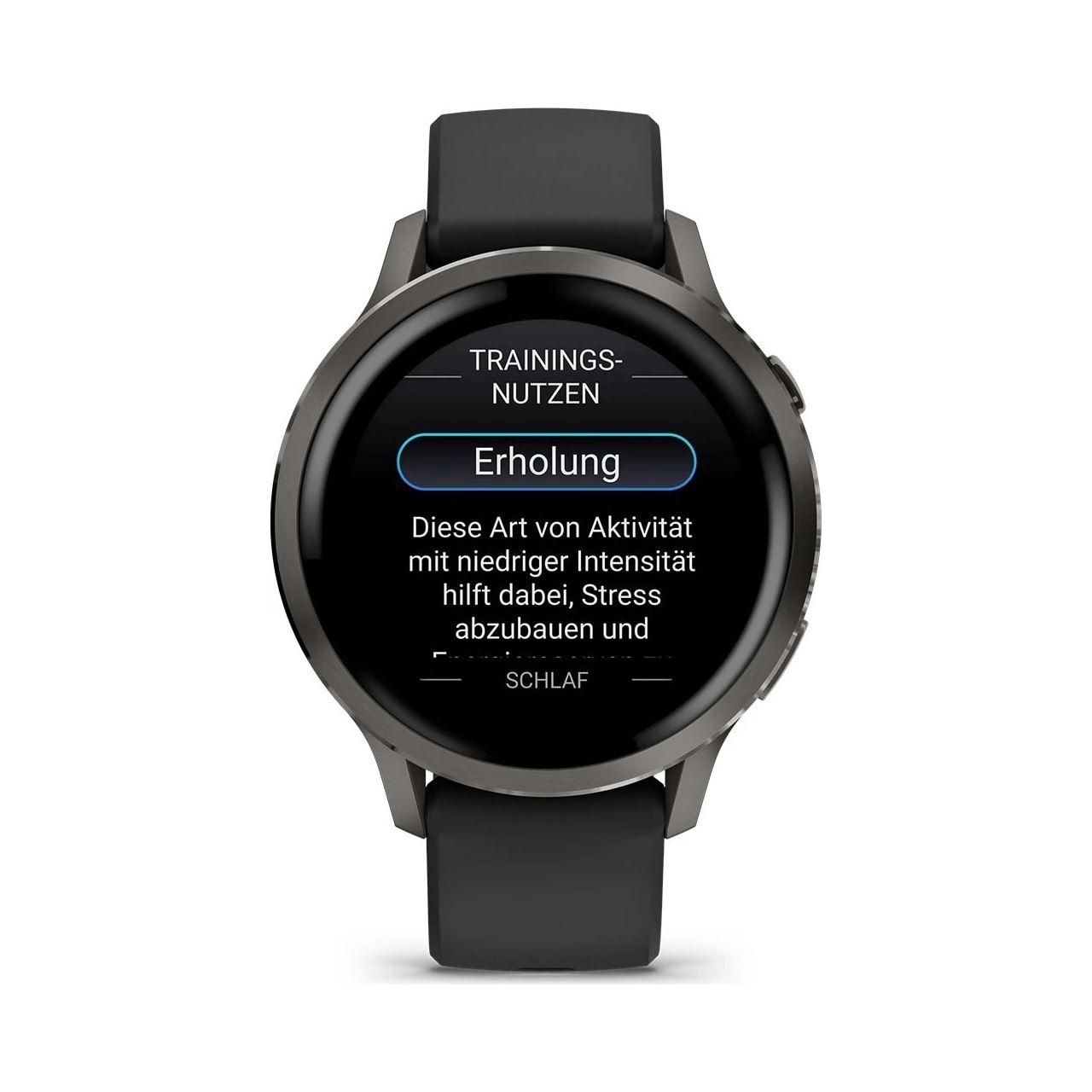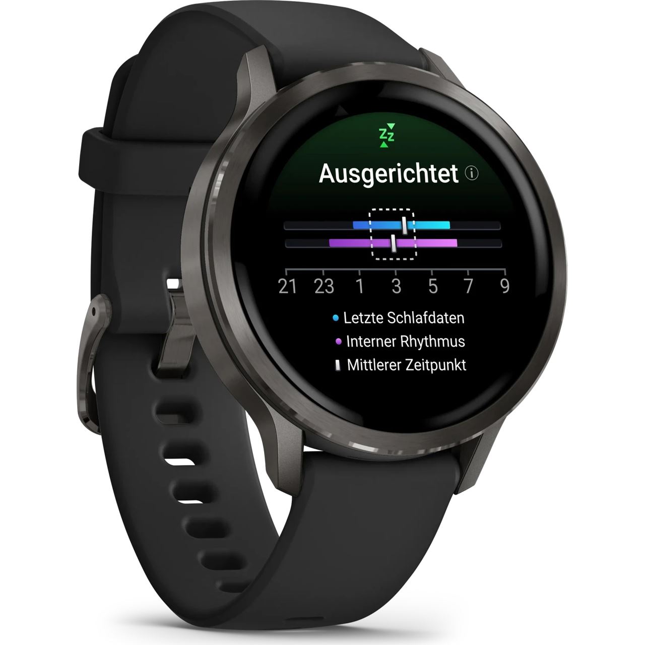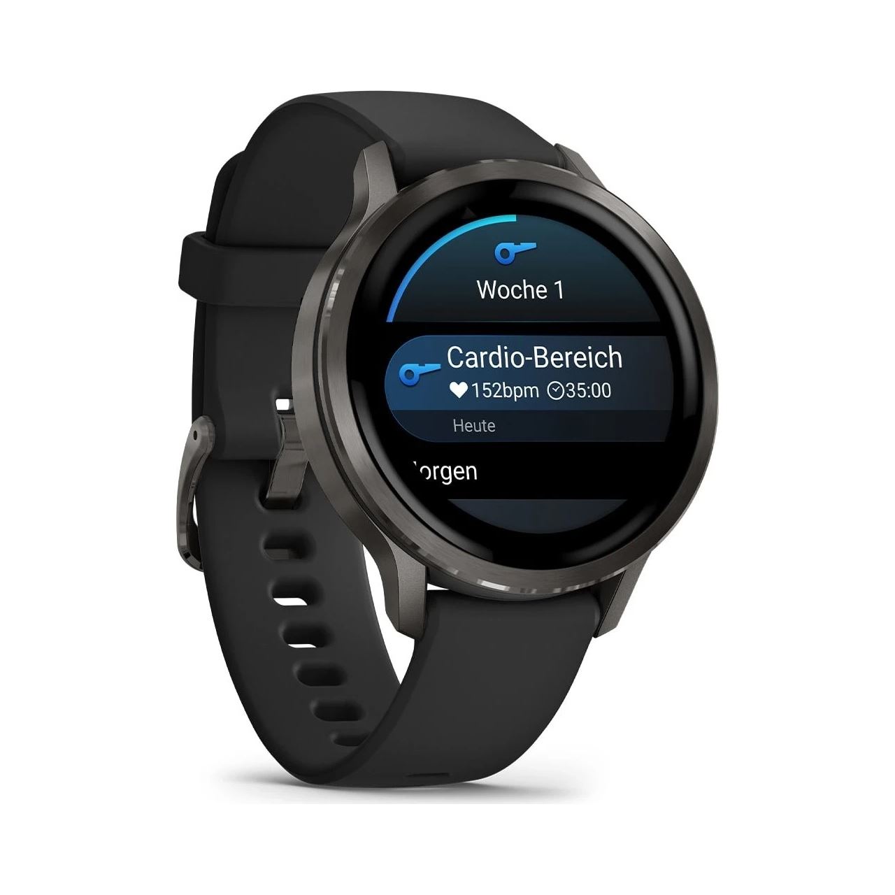 Garmin Venu 4. Bildschirmdiagonale: 3,05 cm (1.2"), Bildschirmtechnologie: AMOLED, Display-Auflösung: 390 x 390 Pixel, Touchscreen. Flash-Speicher: 8 GB. WLAN. GPS. Gewicht: 33 g. Bandmaterial: Silikon, Armbandfarbe: Schwarz