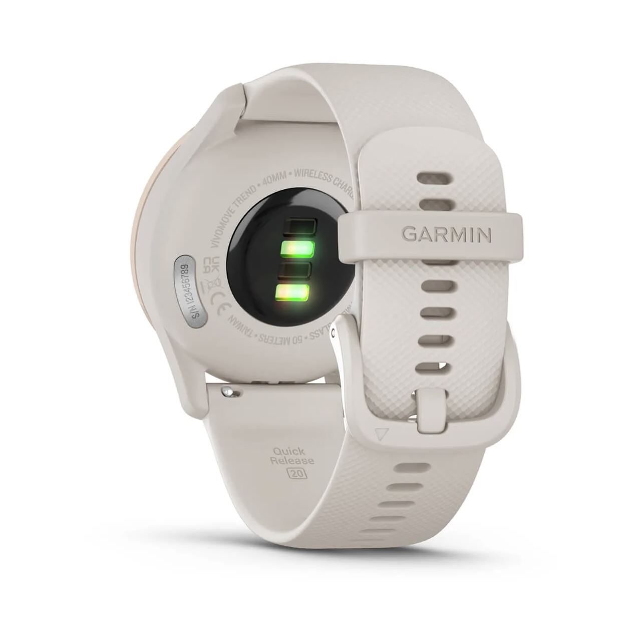 Garmin vivomove Trend. Bildschirmtechnologie: LCD, Display-Auflösung: 254 x 346 Pixel, Touchscreen. GPS. Gewicht: 28,3 g. Wasserdicht bis: 50 m, Bandmaterial: Silikon, Armbandfarbe: Grau