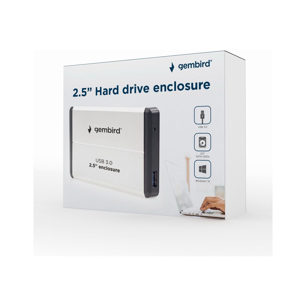 Gembird EE2-U3S-2-S. Produkttyp: HDD-Gehäuse. Anzahl der unterstützten Speicherlaufwerke: 1, Größe des Speicherlaufwerks: 2.5", Unterstützte Speicherlaufwerk-Schnittstellen: SATA. Produktfarbe: Silber