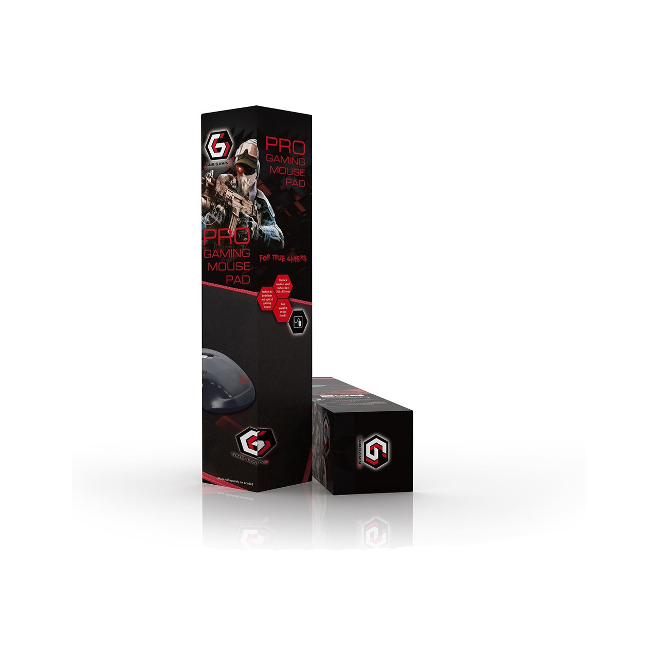 Gembird MP-GAMEPRO-M. Breite: 250 mm, Tiefe: 350 mm. Produktfarbe: Mehrfarbig, Oberflächenfärbung: Muster, Material: Stoff, Schaum, Gaming-Mauspad