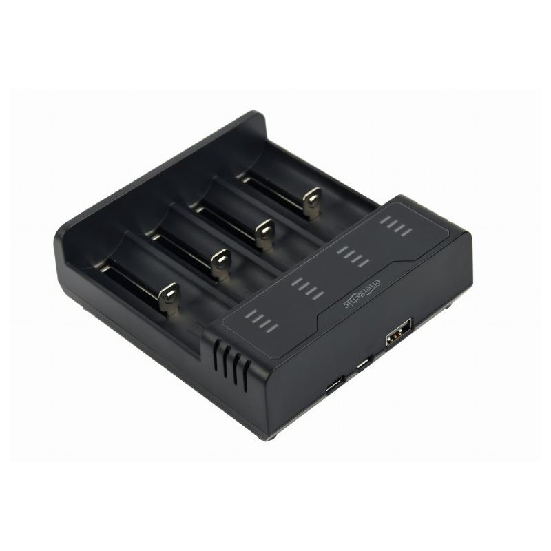 4-Schacht-Schnellladung für Akkutypen: AAA / R03, AA / R6, 10440, 14500, 14650, 16340, 17500, 17670, 18350, 18500, 18650, 18700