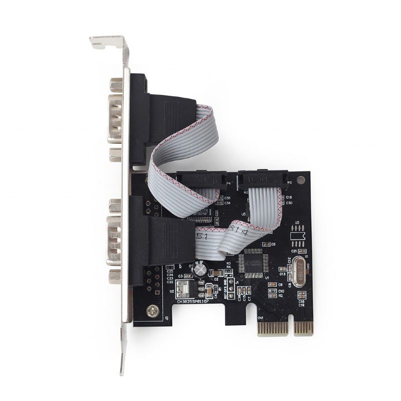 Gembird SPC-22. Hostschnittstelle: PCIe, Ausgangsschnittstelle: Seriell, Formfaktor der Erweiterungskarte: Niedriges Profil. Produktfarbe: Schwarz. Chipsatz: WCH382, Datenübertragungsrate (max): 0,002 Gbit/s, Baudrate: 16000 Kbit/s. Unterstützt Windows-Betriebssysteme: Windows 10, Windows 7, Windows 8. Breite: 67 mm, Tiefe: 120 mm, Höhe: 20 mm