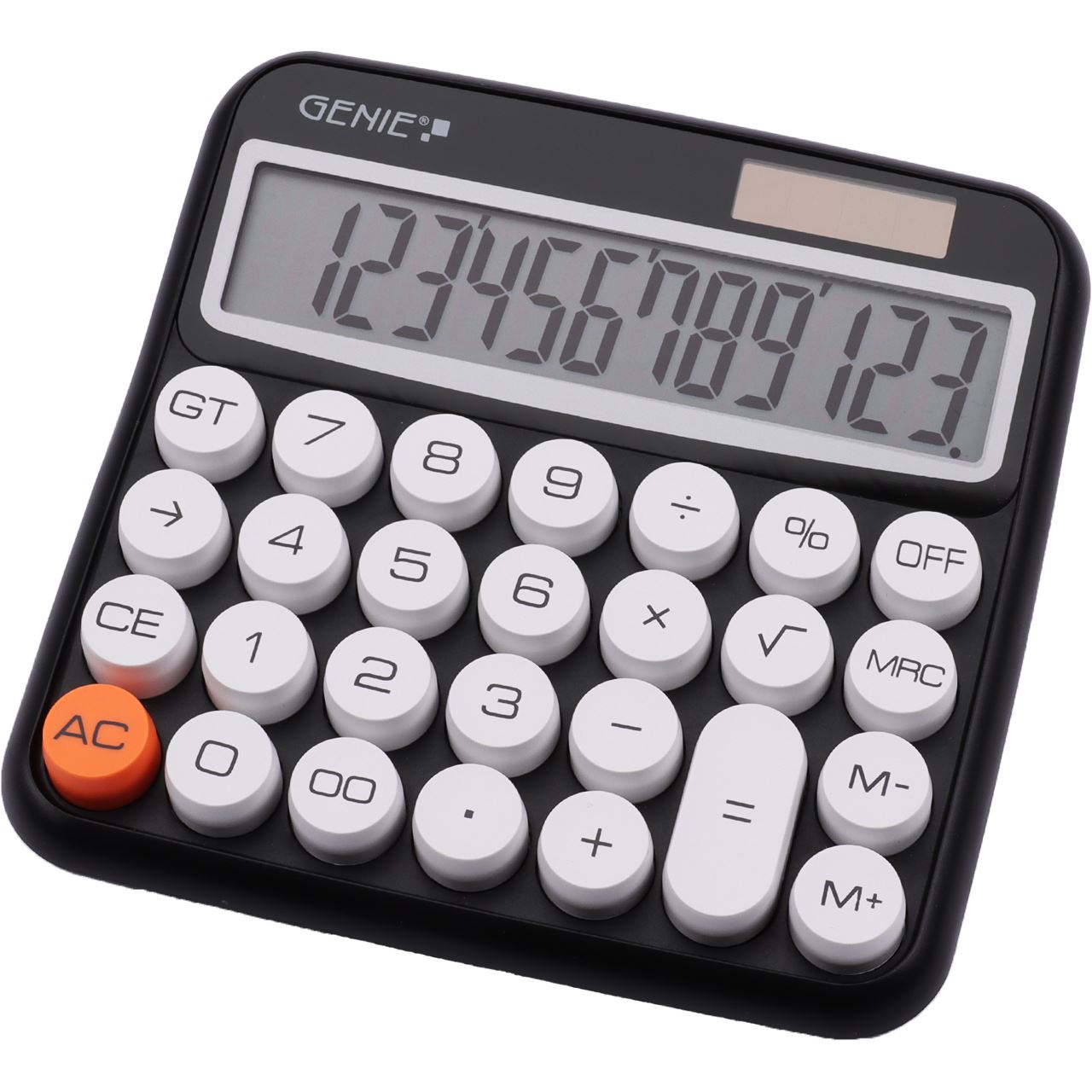 Genie 612 BK. Formfaktor: Desktop, Typ: Einfacher Taschenrechner. Stellen: 12 Ziffern, Display klappbar. Energiequelle: Batterie/Solar. Produktfarbe: Schwarz