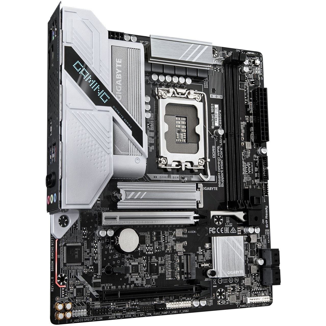 GIGABYTE B860M GAMING WIFI6 Mainboard - Intel Core Ultra Series CPUs, 8+1+2 Phases VRM, bis zu 9066MHz DDR5, 1xPCIe 5.0 + 1xPCIe 4.0 M.2, 2.5GbE LAN, WIFI 6, USB 3.2 Gen 1. Prozessorhersteller: Intel, Prozessorsockel: LGA 1851 (Socket V1), Kompatible Prozessoren: Intel Core Ultra (Serie 1), Intel Core Ultra (Series 2). Unterstützte Arbeitsspeicher: DDR5-SDRAM, RAM-Speicher maximal: 128 GB, Arbeitsspeicher Typ: DIMM. Unterstützte Speicherlaufwerk-Schnittstellen: M.2, SATA III, Unterstützte Speicherlaufwerke: HDD & SSD, RAID Level: 0, 1, 5, 10. Maximale Auflösung: 4096 x 2160 Pixel. Ethernet Schnittstellen Typ: 2.5 Gigabit Ethernet, Top WLAN-Standard: Wi-Fi 6 (802.11ax), WLAN-Standards: 802.11a, 802.11b, 802.11g, Wi-Fi 4 (802.11n), Wi-Fi 5 (802.11ac), Wi-Fi 6 (802.11ax)