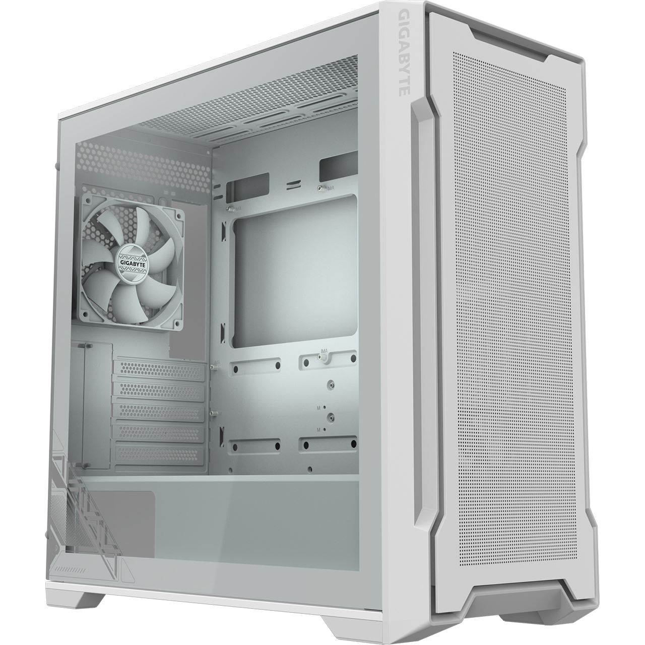 GIGABYTE C102 GLASS. Formfaktor: Midi Tower, Typ: PC, Produktfarbe: Weiß. Platzierung der Stromversorgung: Boden, Unterstützte Stromversorgungs-Formfaktoren: ATX. Installierte Lüfter (Vorderseite): 1x 120 mm, Durchmesser unterstützte Vorderseitenlüfter: 120,140 mm, Durchmesser unterstützte Seitenlüfter: 120 mm. Unterstützte Hard-Disk Drive Größen: 2.5,3.5", SSD-Formfaktor: 2.5". Breite: 210 mm, Tiefe: 450 mm, Höhe: 450 mm