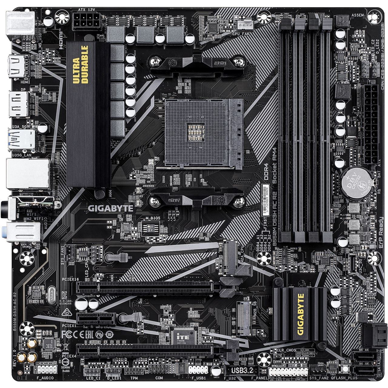 GIGABYTE B550M DS3H AC R2 Mainboard – AMD Ryzen 5000 Prozessoren, 5+3 Phasen VRM, bis zu 4733 MHz DDR4 (O.C.), 1x PCIe 4.0 + 1x PCIe 3.0 M.2, Wi-Fi 5, 1 GbE LAN, USB 3.2 Gen 1. Prozessorhersteller: AMD, Prozessorsockel: Sockel AM4, Kompatible Prozessoren: AMD Ryzen 3000 Series, AMD Ryzen 4000 Series, AMD Ryzen 5000 Series. Unterstützte Arbeitsspeicher: DDR4-SDRAM, RAM-Speicher maximal: 128 GB, Arbeitsspeicher Typ: DIMM. Unterstützte Speicherlaufwerk-Schnittstellen: M.2, PCI Express 3.0, PCI Express 4.0, SATA III, Unterstützte Speicherlaufwerke: HDD & SSD, RAID Level: 0, 1, 10. Maximale Auflösung: 5120 x 2880 Pixel. Ethernet Schnittstellen Typ: Gigabit Ethernet, LAN-Controller: Realtek RTL8111H, Top WLAN-Standard: Wi-Fi 5 (802.11ac)