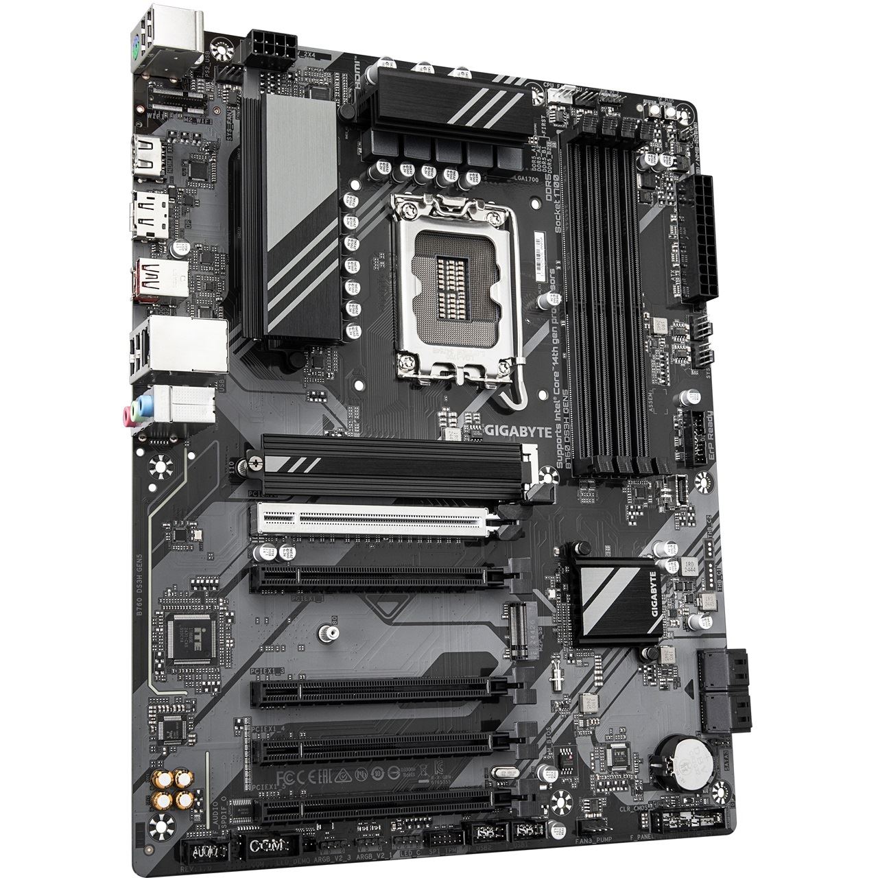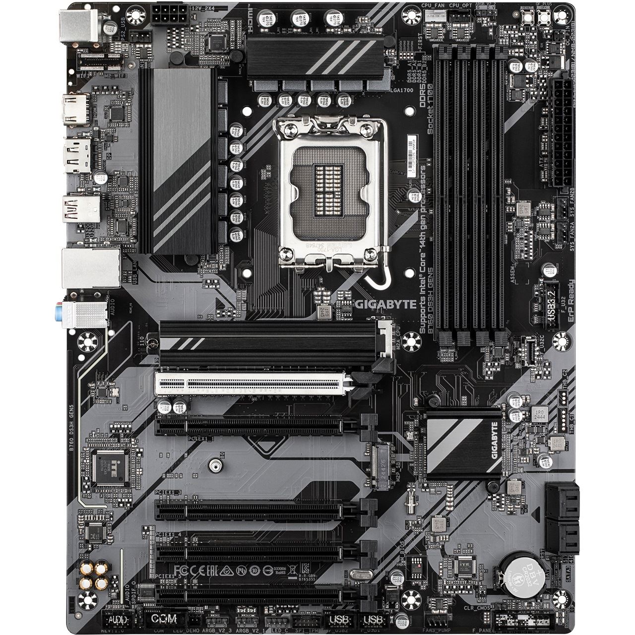 GIGABYTE B760 DS3H GEN5 Mainboard – Unterstützt Intel Core Prozessoren der 14. Generation, 8+2+1 Phasen Digital-VRM, bis zu 5600 MHz DDR5, 2 x PCIe 4.0 M.2, 1 GbE LAN, USB 3.2 Gen 2x2. Prozessorhersteller: Intel, Prozessorsockel: LGA 1700, Kompatible Prozessoren: Intel® Celeron®, Intel Core i3 12th Gen, Intel Core i3 13th Gen, Intel Core i3 14th Gen, Intel.... Unterstützte Arbeitsspeicher: DDR5-SDRAM, RAM-Speicher maximal: 256 GB, Arbeitsspeicher Typ: DIMM. Unterstützte Speicherlaufwerk-Schnittstellen: M.2, PCI Express 4.0, SATA III, Unterstützte Speicherlaufwerke: HDD & SSD, RAID Level: 0, 1, 5, 10. Maximale Auflösung: 4096 x 2304 Pixel. Ethernet Schnittstellen Typ: Gigabit Ethernet, LAN-Controller: Realtek RTL8111H