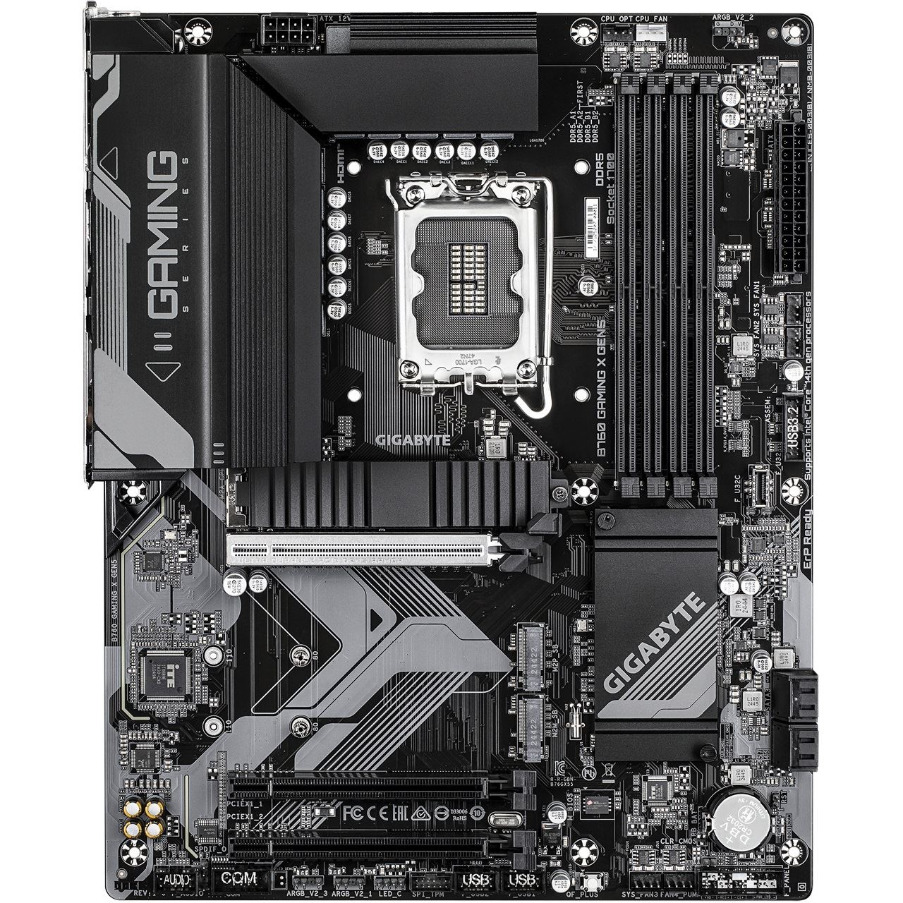 GIGABYTE B760 GAMING X GEN5 Mainboard – Unterstützt Intel Core Prozessoren der 14. Generation, 8+1+1 Phasen VRM, bis zu 5600 MHz DDR5, 3 x PCIe 4.0 M.2, 2.5 GbE LAN, USB 3.2 Gen 2. Prozessorhersteller: Intel, Prozessorsockel: LGA 1700, Kompatible Prozessoren: Intel® Celeron®, Intel Core i3 12th Gen, Intel Core i3 13th Gen, Intel Core i3 14th Gen, Intel.... Unterstützte Arbeitsspeicher: DDR5-SDRAM, RAM-Speicher maximal: 256 GB, Arbeitsspeicher Typ: DIMM. Unterstützte Speicherlaufwerk-Schnittstellen: M.2, PCI Express 4.0, SATA III, Unterstützte Speicherlaufwerke: HDD & SSD, RAID Level: 0, 1, 5, 10. Maximale Auflösung: 4096 x 2304 Pixel. Ethernet Schnittstellen Typ: 2.5 Gigabit Ethernet, LAN-Controller: Realtek RTL8125