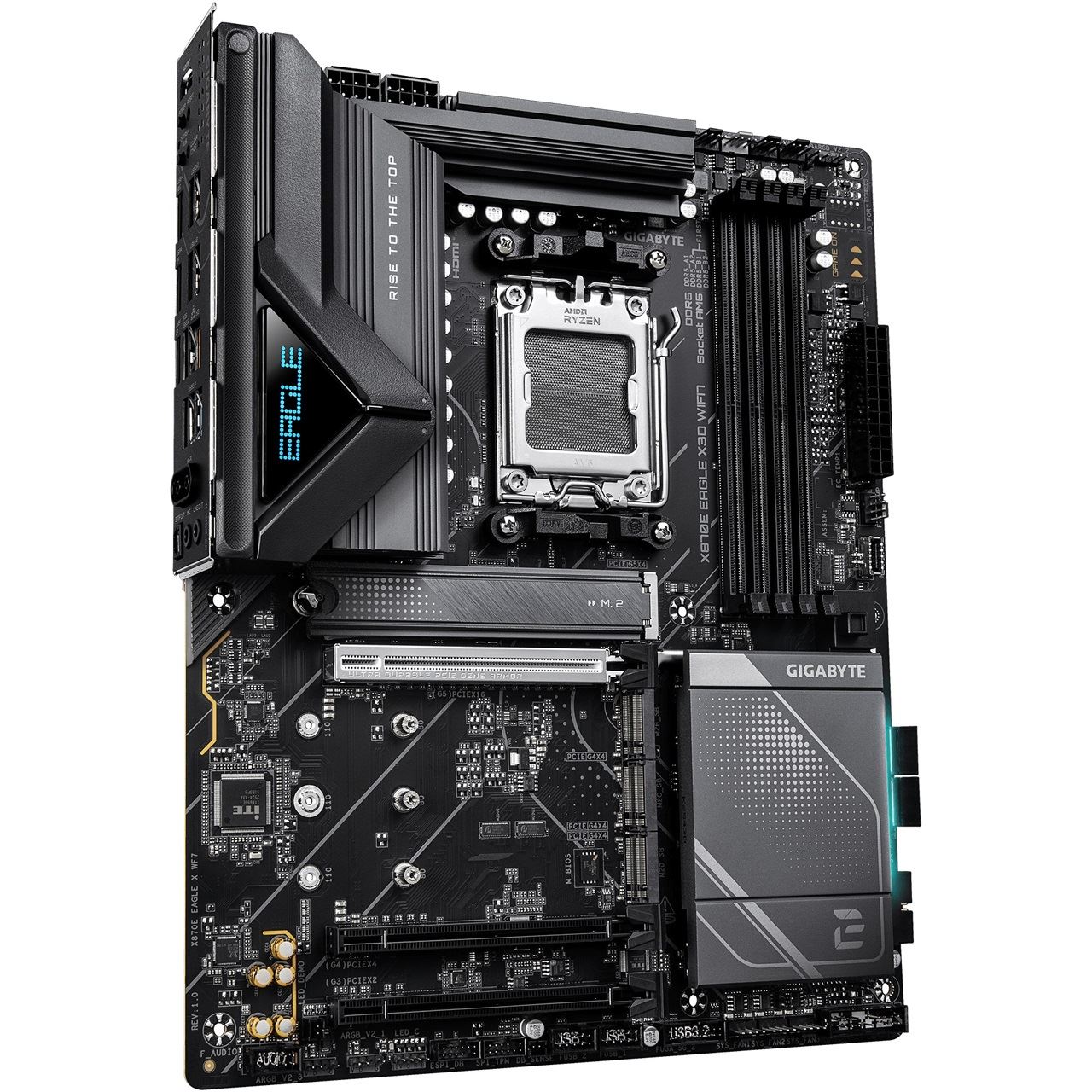 GIGABYTE X870E EAGLE X3D WIFI7 Mainboard – Unterstützt AMD Ryzen 9000 CPUs, digitales 14+2+2-Phasen-VRM, bis zu 9000 Hz DDR5 (OC), 1× PCIe 5.0 + 3× PCIe 4.0, Wi-Fi 7, 5-GbE-LAN, USB 4. Prozessorhersteller: AMD, Prozessorsockel: Sockel AM5, Kompatible Prozessoren: AMD Ryzen 7000 Series, AMD Ryzen 8000 Series, AMD Ryzen 9000 Series. Unterstützte Arbeitsspeicher: DDR5-SDRAM, RAM-Speicher maximal: 256 GB, Arbeitsspeicher Typ: DIMM. Unterstützte Speicherlaufwerk-Schnittstellen: M.2, PCI Express 4.0, PCI Express 5.0, SATA III, Unterstützte Speicherlaufwerke: HDD & SSD, RAID Level: 0, 1, 5, 10. Maximale Auflösung: 4096 x 2304 Pixel. Ethernet Schnittstellen Typ: 2.5 Gigabit Ethernet, 5 Gigabit Ethernet, Schnelles Ethernet, Gigabit Ethernet, LAN-Controller: Realtek RTL8126, Top WLAN-Standard: Wi-Fi 7 (802.11be)