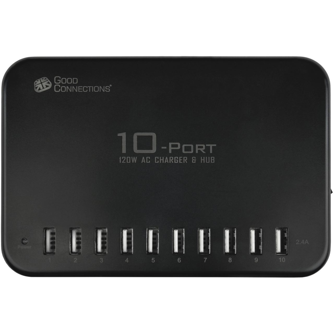 Mit der Good Connections® Schnellladestation mit zehn USB-A-Anschlüssen können Sie bequem bis zu zehn Geräte gleichzeitig an einer Steckdose aufladen. Die Schnellladestation unterstützt dabei pro Port bis zu 12W (5V 2,4A). Ein eingebauter Smart-Charging-Chipsatz bestimmt pro Port die für Ihr Gerät benötigte Ladung und liefert eine angepasste und für ihr Gerät optimierte Ladeleistung.